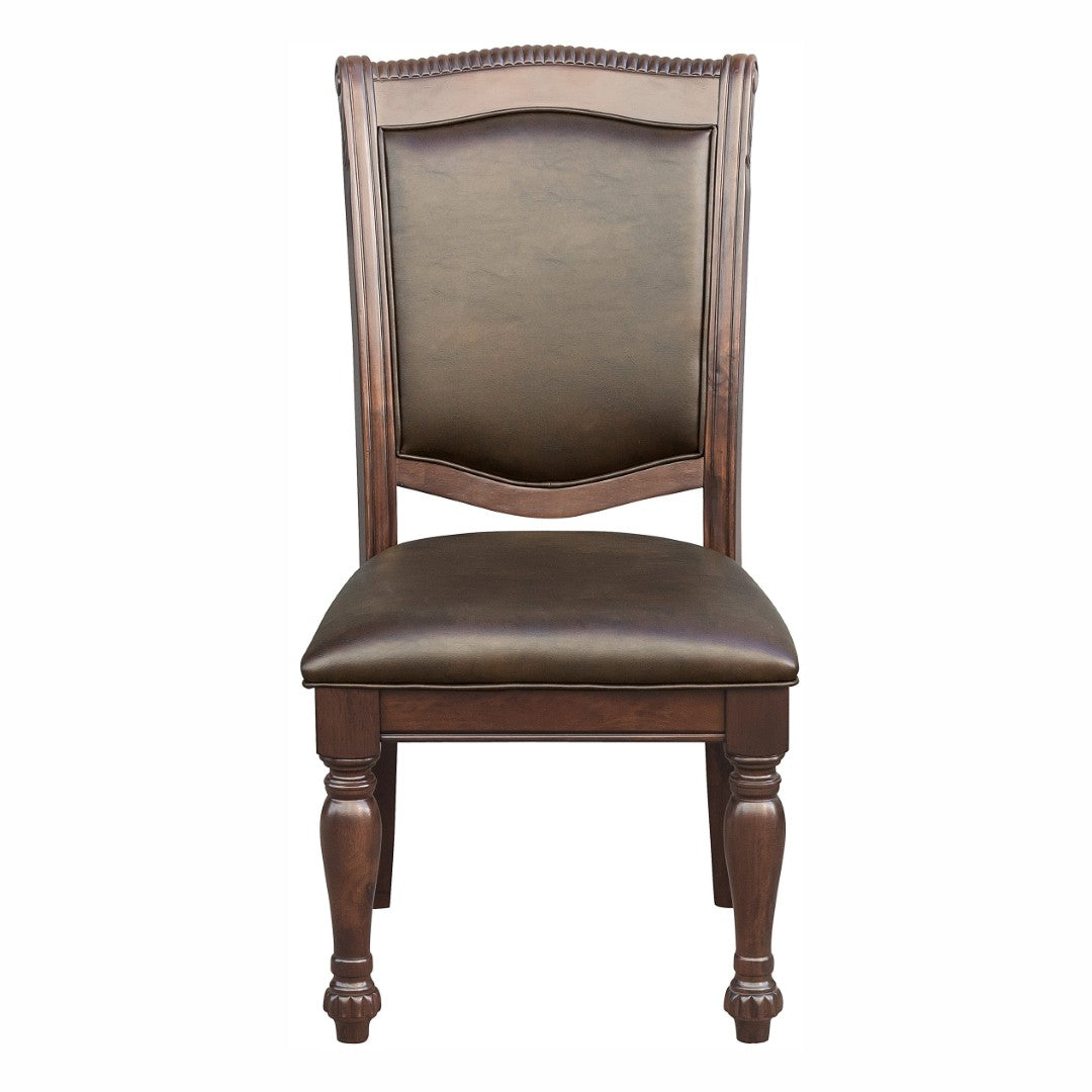 Elevate your dining room with the Lordsburg traditional 7-piece dining set, thoughtfully crafted to combine classic styling with everyday comfort. The set features a richly finished parquet tabletop, ornate carved molding, and supportive pedestal bases, paired with comfortably upholstered wood-framed chairs in brown faux leather—perfect for formal gatherings or family meals.