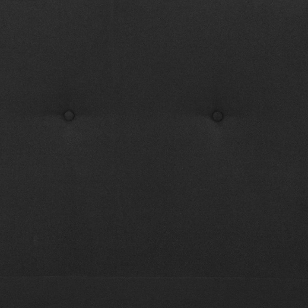- Bed frame construction: Black fabric upholstery over plywood and metal frame; matching tufted footboard; center support leg for added stability