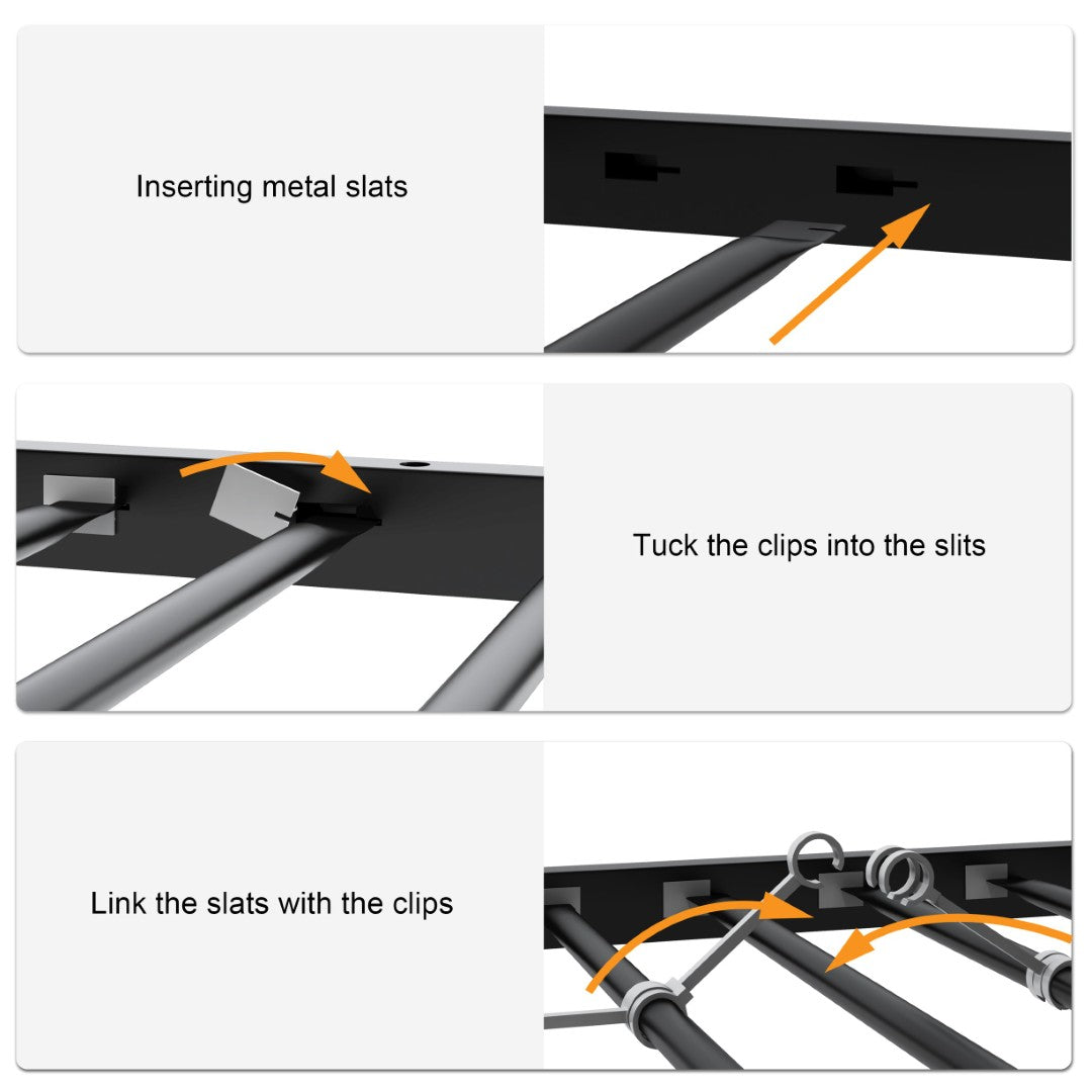 - Stylish & Durable Design: A sleek black metal frame ensures durability and a modern look. The metal slats provide strong support, preventing mattresses from sagging and extending their lifespan.