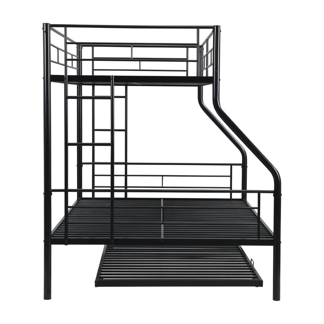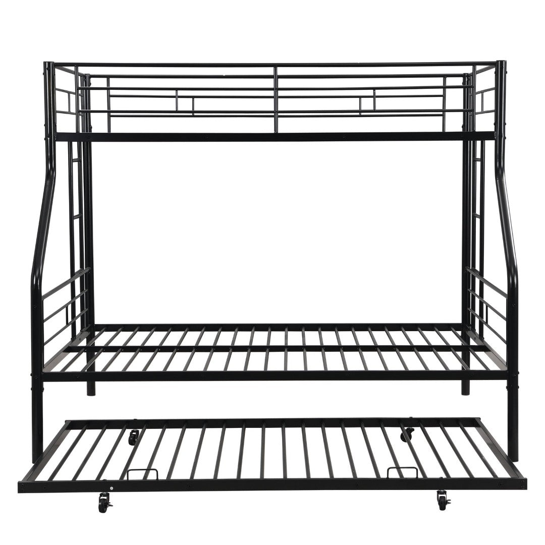 Maximize sleeping space and modernize your room with this sturdy twin-over-full metal bunk bed featuring a convenient trundle. Designed for durability and easy setup, it offers a sleek black finish, integrated safety features, and ample under-bed storage—perfect for kids’ rooms, guest spaces, or shared bedrooms.