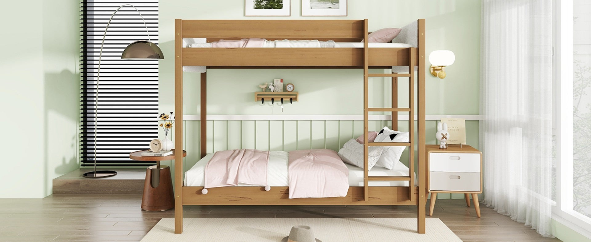 - #4[Design of Elegance] This bunk bed, adorned with sturdy and concise wood outlines, exudes a serene and classic aesthetics. It harmoniously blends into any setting, offering a fashionable and minimalist appeal, ideal for various decor styles. The bed ensures both firmness and coziness, designed to provide tranquil sleep and long-term durability.