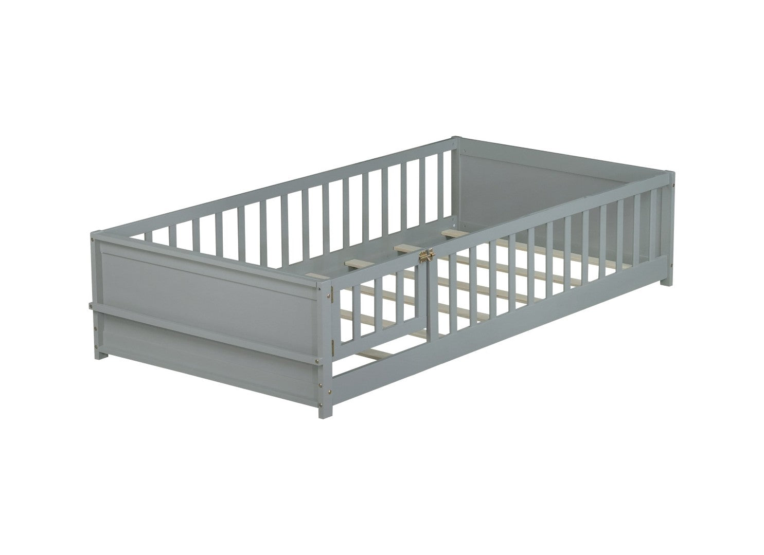 - #1[Practical and Protection Design] The floor bed is an ideal place to sleep and have fun in the slatted bed platform. The bed is most suitable to those compact rooms and limited space with guardrails around the bed to protect from any accidental falling off. The bed is equipped with a revolving door, which has 2 hinges and a steel latch.