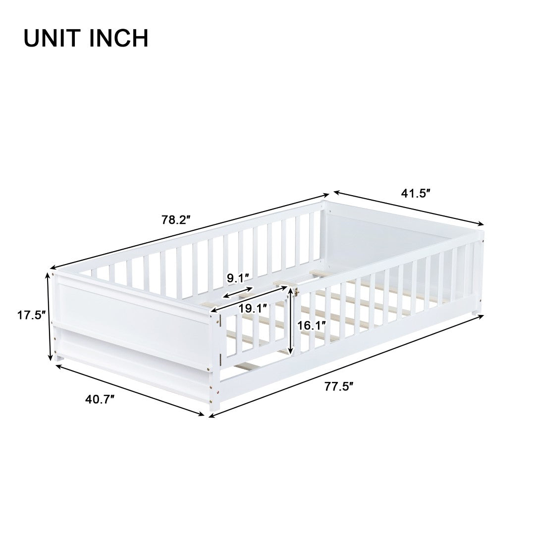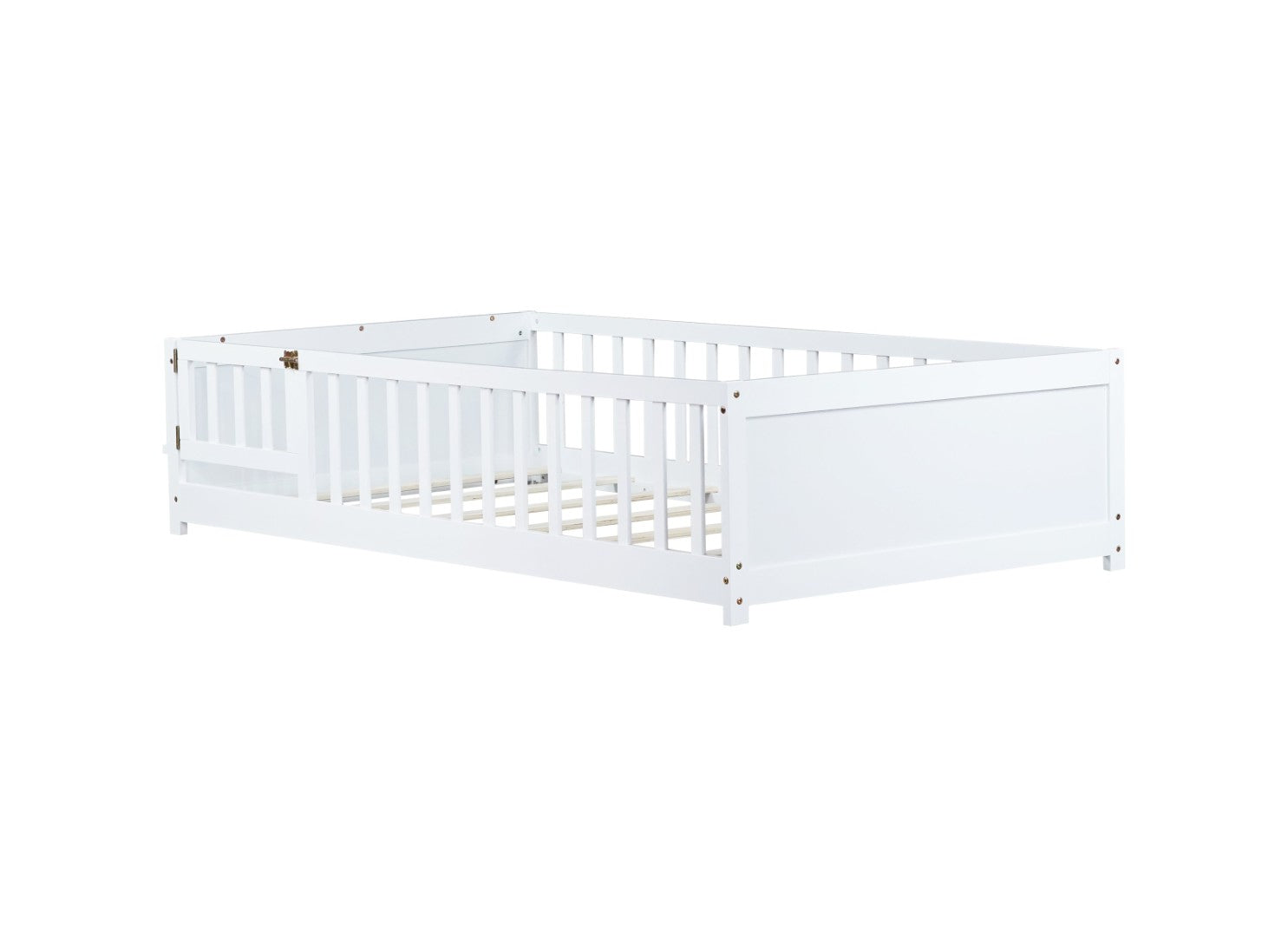 - #1[Practical and Protection Design] The floor bed is an ideal place to sleep and have fun in the slatted bed platform. The bed is most suitable to those compact rooms and limited space with guardrails around the bed to protect from any accidental falling off. The bed is equipped with a revolving door, which has 2 hinges and a steel latch.