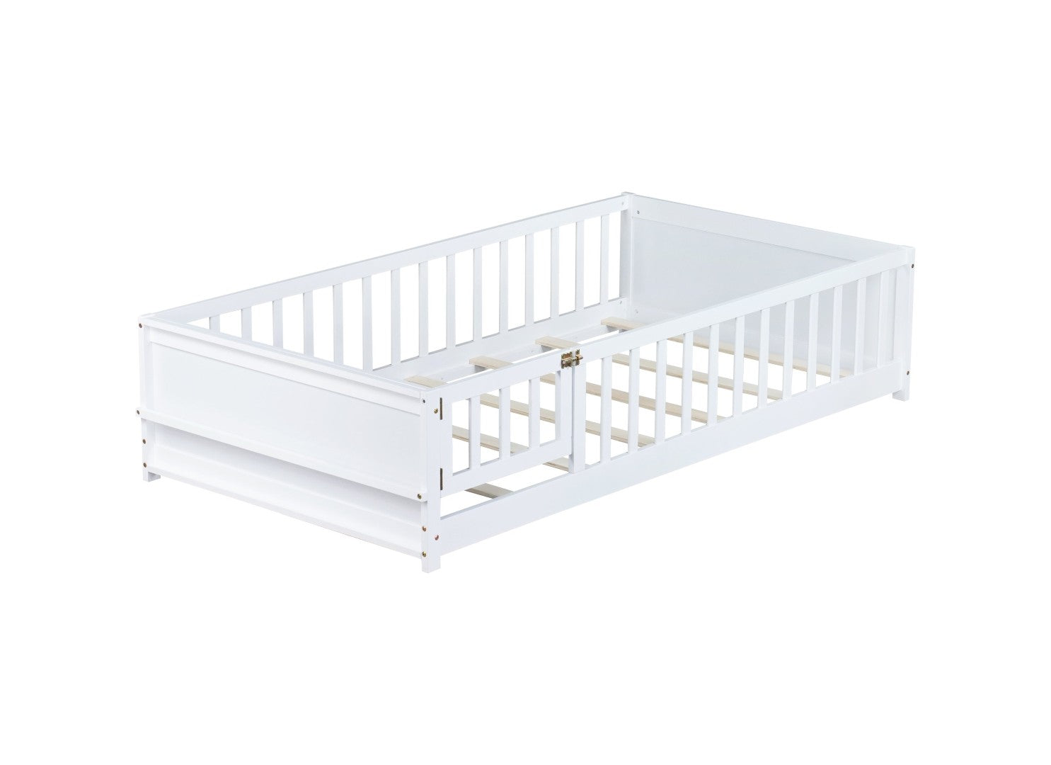 Bring both comfort and creativity to your child's bedroom with this charming twin floor bed. Designed as a low-profile sleeping solution with built-in storage and playful details, it encourages imagination while providing a safe, sturdy place to rest. Its clean white finish complements many décor styles and makes bedtime—and storytime—more inviting.