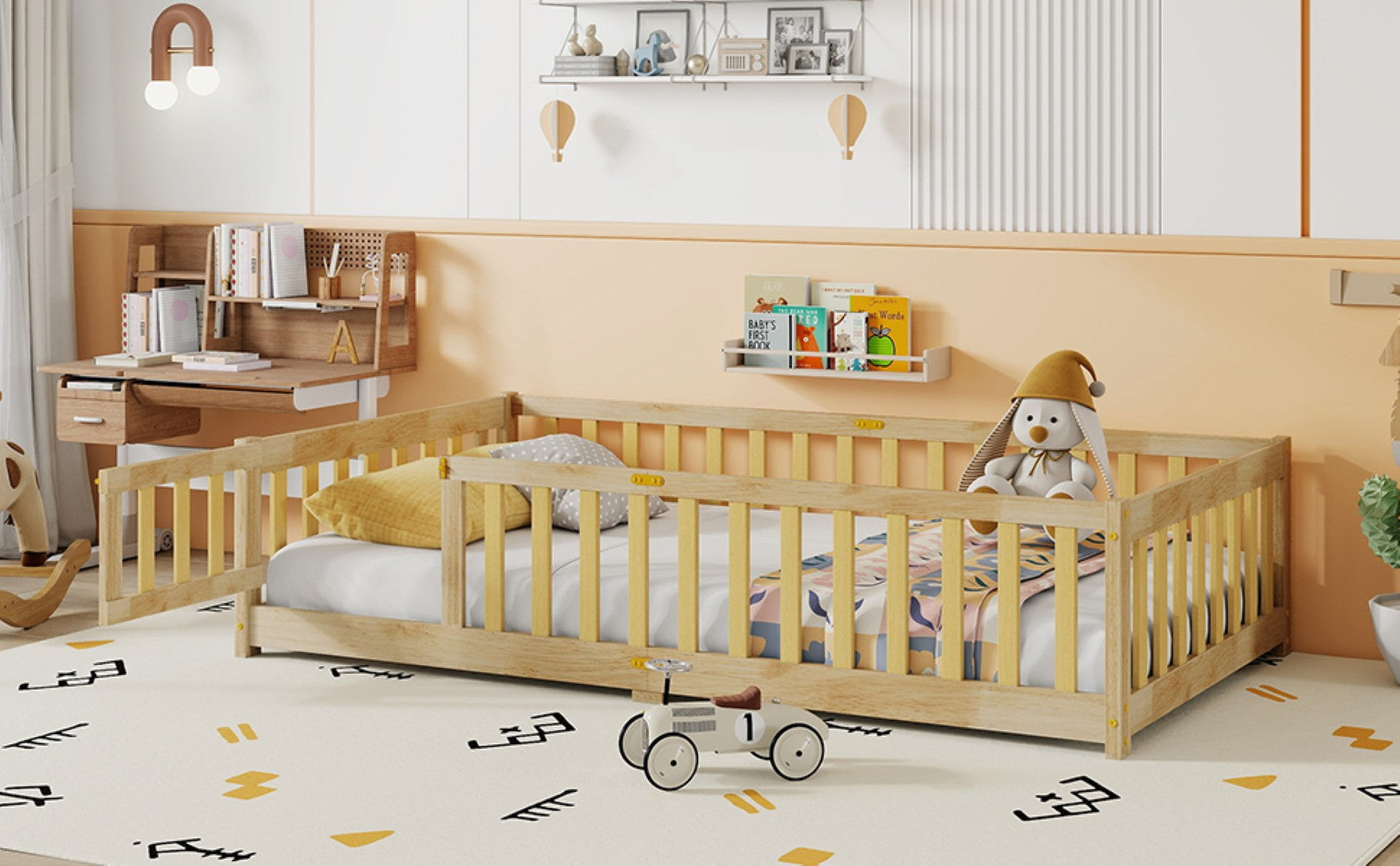 - [Perfect for Transition Period] The floor bed facilitates the transition from co-sleeping to an independent sleeping environment, thereby fostering children's autonomy. The fence-enclosed design promotes exploration and freedom within their personal space.