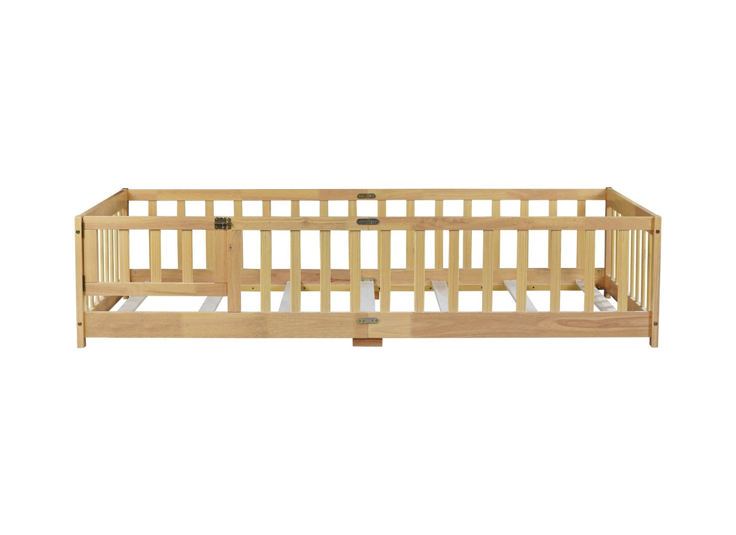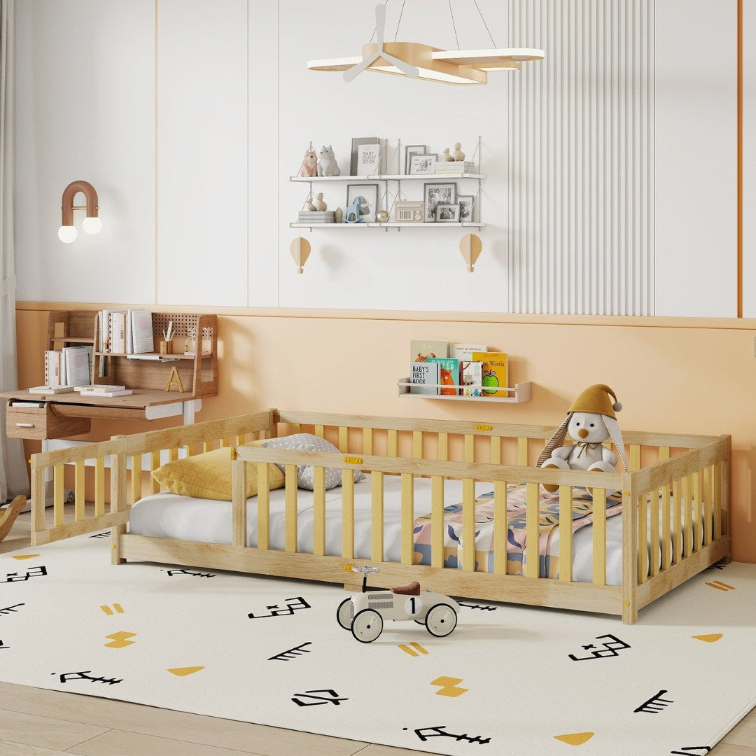 Create a cozy, safe sleeping space with this twin-size floor bed featuring a built-in fence and door. Crafted from durable rubber wood with an eco-friendly finish, the low-profile design makes it ideal for children or anyone who prefers a grounded bed. Easy to assemble with included manual and hardware, it pairs best with a thin mattress for comfortable, secure rest.