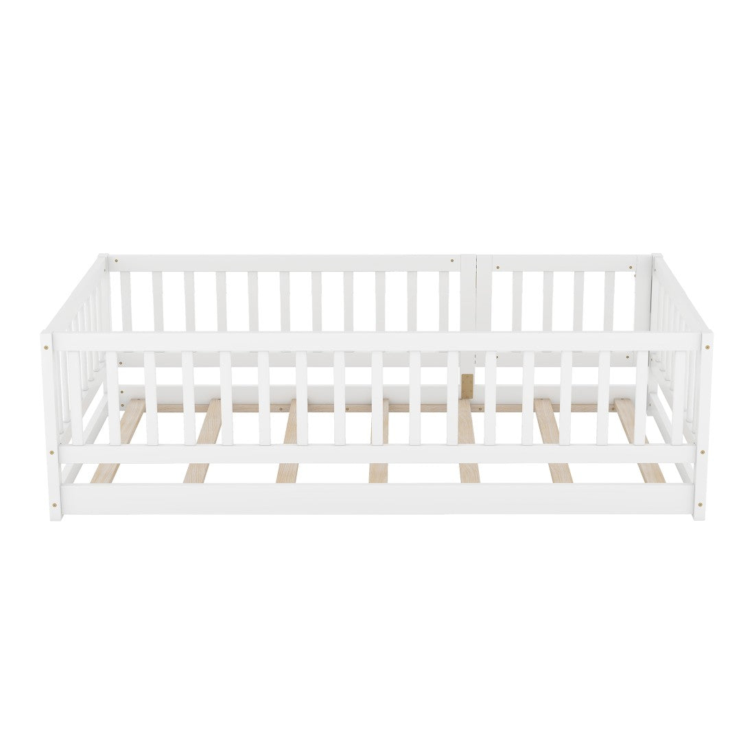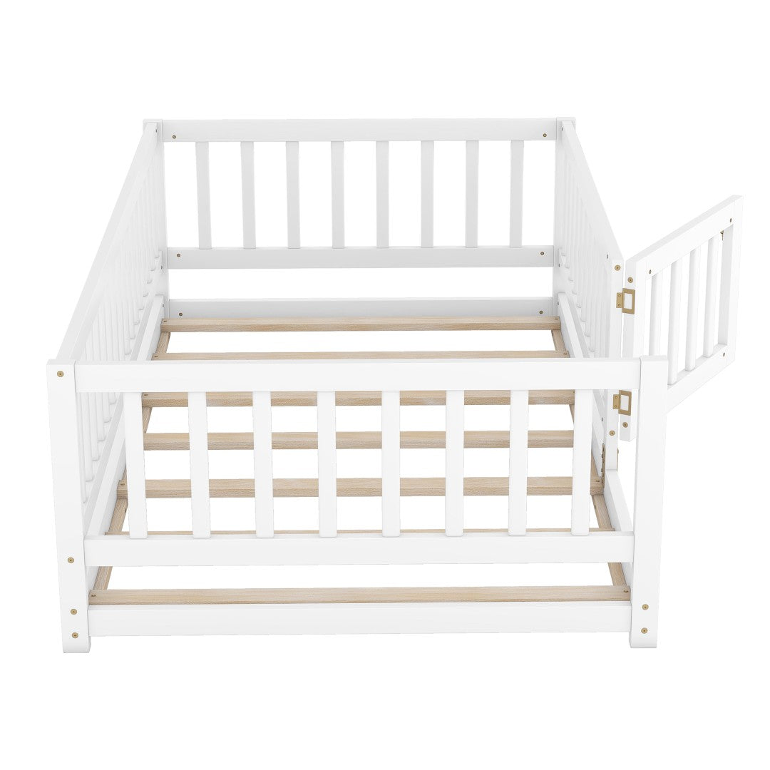 - [Floor Bed with Fence and Door]The four guardrail of the montessori floor bed are not truncated, so our twin floor bed is more stable than a regular floor bed. There is a small door that can be opened and closed, which increases the interest of the montessori floor bed and creates a more safety sleeping space. Fence Hight: 21.5". Note: The Door is removable.