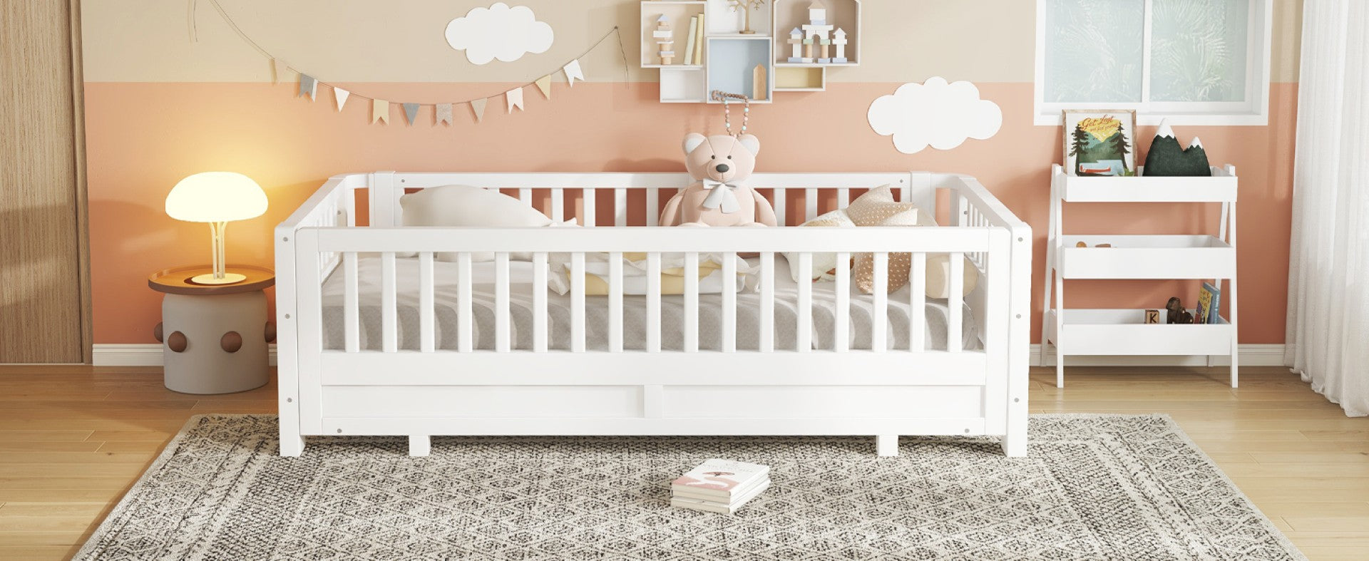 Transform any bedroom with a versatile, safety-focused twin platform bed that adapts as your needs change. Crafted from solid pine with supportive plywood and MDF elements, this convertible bed blends clean, minimalist styling with durable construction and child-friendly safety features. Its modular guardrail design lets you switch from a single twin to a double twin footprint quickly—ideal for growing children, shared rooms, or flexible guest arrangements—while included assembly tools and instructions keep setup straightforward.