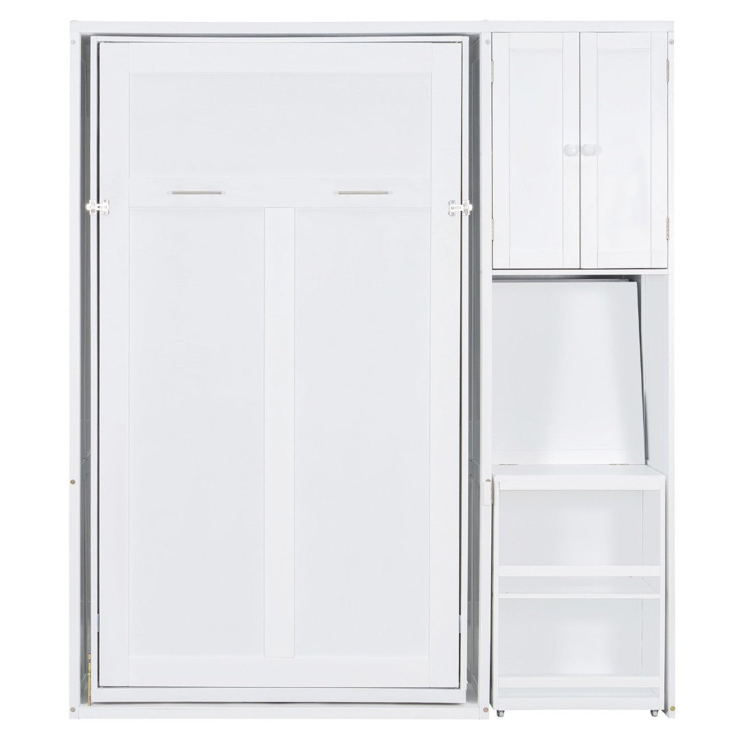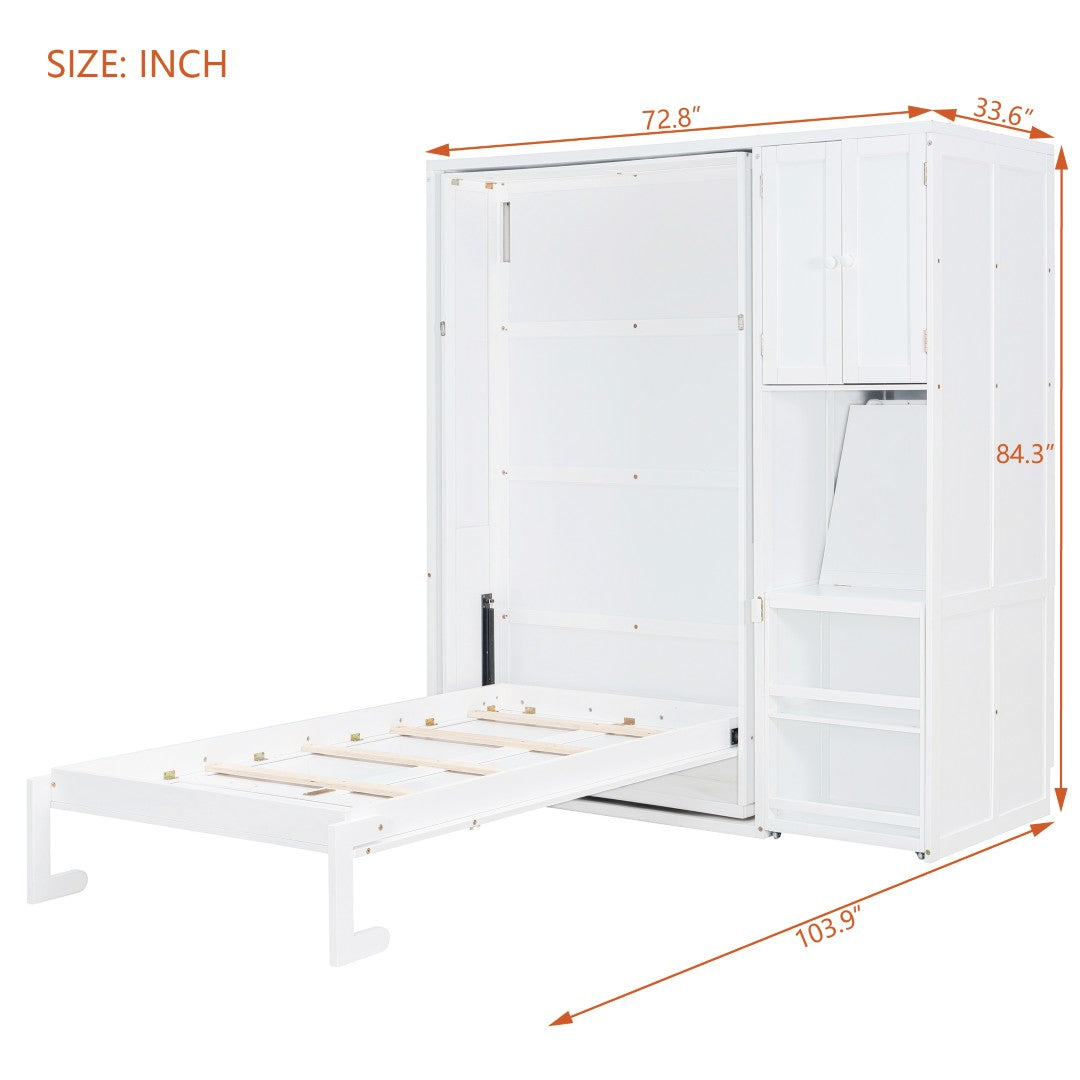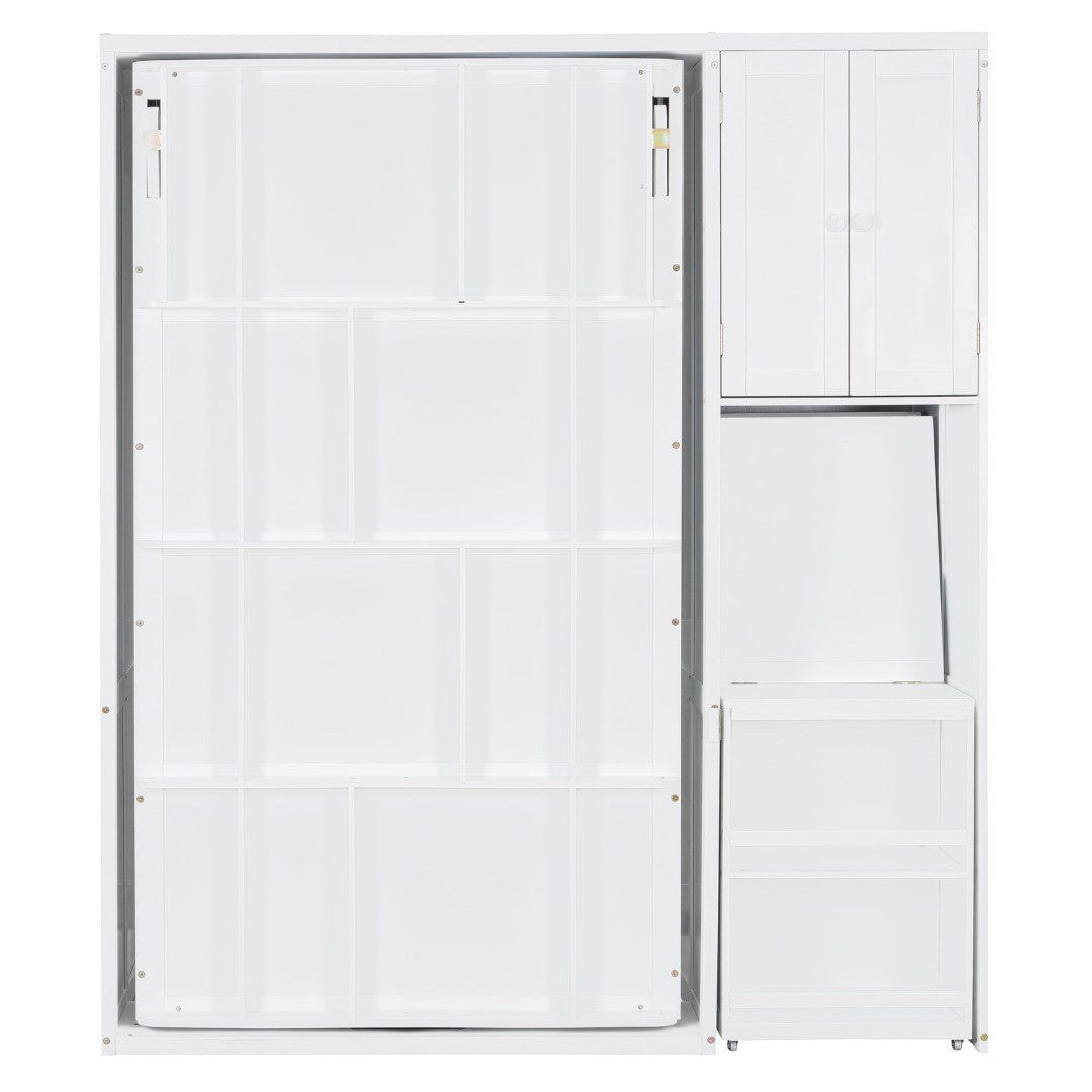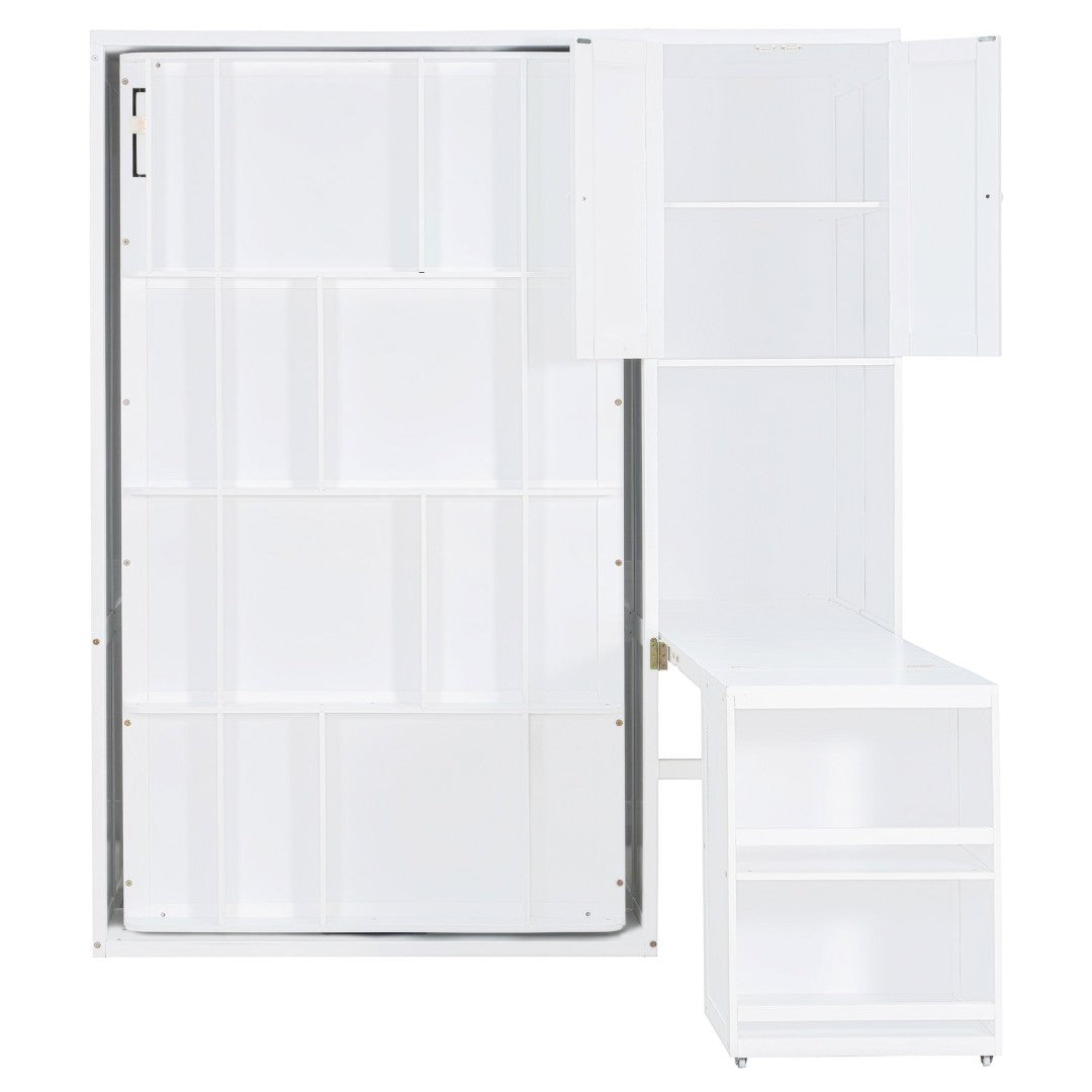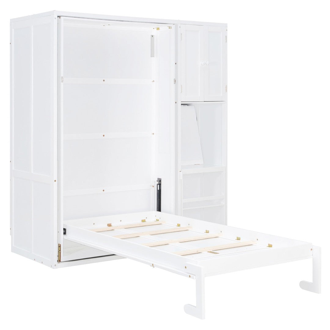 Bring multifunctional design and smart storage to compact spaces with this rotating Murphy bed. Perfect for studios, guest rooms, dorms, or home offices, the unit folds and rotates to reveal a bookshelf front, hides belongings in a top cabinet, and converts into a comfortable twin sleeping surface—while an extendable desk and side shelving provide a dedicated workspace and display area.