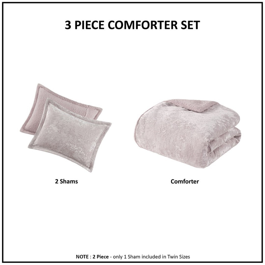 Wrap your bedroom in plush comfort and modern elegance with the Mira crushed velvet comforter set. Sumptuously soft on the face and cozy sherpa on the reverse, this reversible set delivers luxurious texture, year‑round warmth, and easy care—perfect for creating a welcoming, boutique-style sleep space. Hypoallergenic, dust‑resistant fill and OEKO‑TEX certification add healthy-sleep assurance, while the included sham completes a coordinated look for Twin / Twin XL beds.