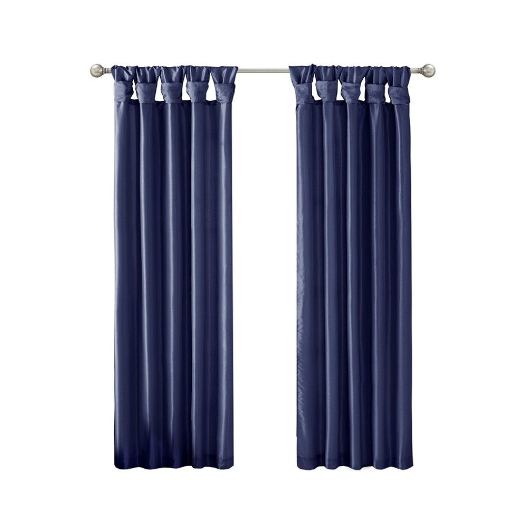 Elevate your room with the refined sheen and tailored drape of this lined faux-silk curtain panel. The DIY twist tab top creates elegant, deep folds for a polished, custom look while the lined construction enhances privacy, light control, and provides a fuller silhouette. Finished in a rich navy, this panel brings a sophisticated, versatile accent to living rooms, bedrooms, or formal spaces.