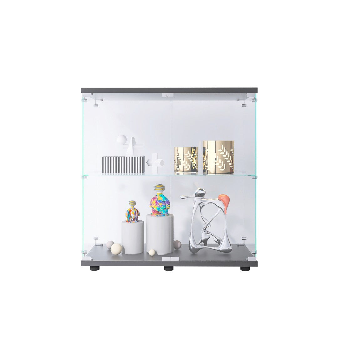 Bring refined visibility and protective display to your favorite collectibles with this sleek two-door glass curio cabinet. Its clean black frame and clear tempered glass create a gallery-like setting for jewelry, figures, books, bottles or keepsakes while the dust-resistant doors and sturdy construction keep items secure and beautifully presented.