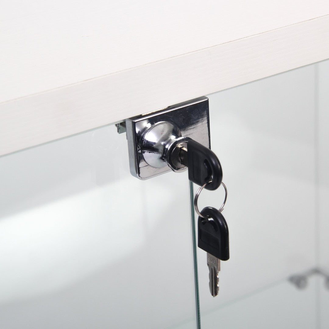 Showcase your collectibles, books, or décor with a sleek, modern glass display cabinet that combines visibility, protection, and style. This floor-standing curio features four clear glass shelves behind twin doors, making it ideal for living rooms, bedrooms, or offices where you want to present items elegantly while keeping them dust-free and secure.