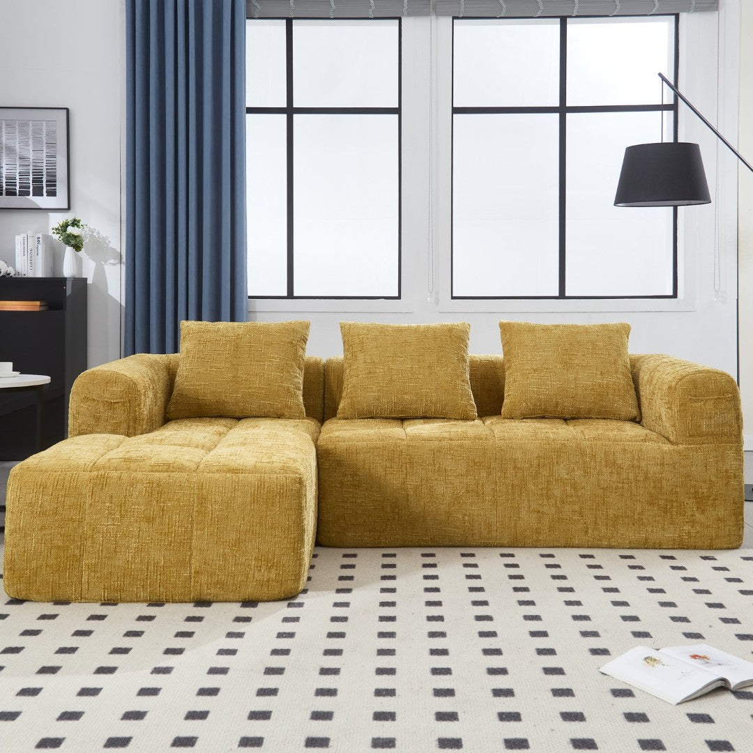Bring modern comfort and versatile style to your living space with this modular L-shaped sectional. Upholstered in luxurious chenille, the sofa combines soft, durable fabrics with high-density foam support and a modular layout that adapts to your room. Thoughtfully designed details—like integrated small side pockets and a compression-free installation—make this sectional both practical and refined for everyday use.
