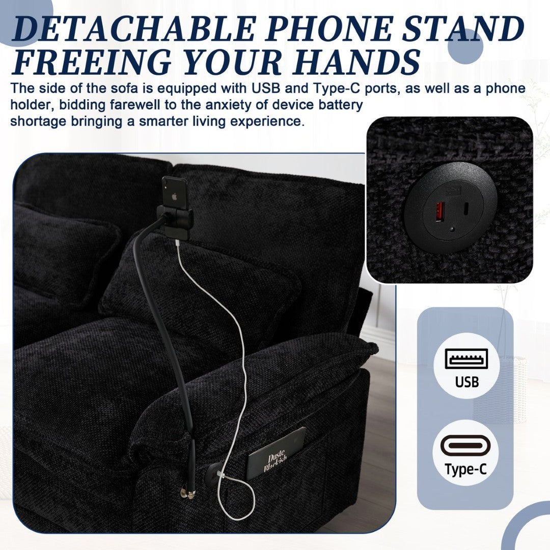 - 【Made for Convenience】The sofa is equipped with a built-in charging interface: 1 USB+1 Type-C, and comes with a phone holder. This design enables convenient charging of devices while making mobile phones within reach, perfectly integrating functionality with modern convenience and bringing a smarter living experience.