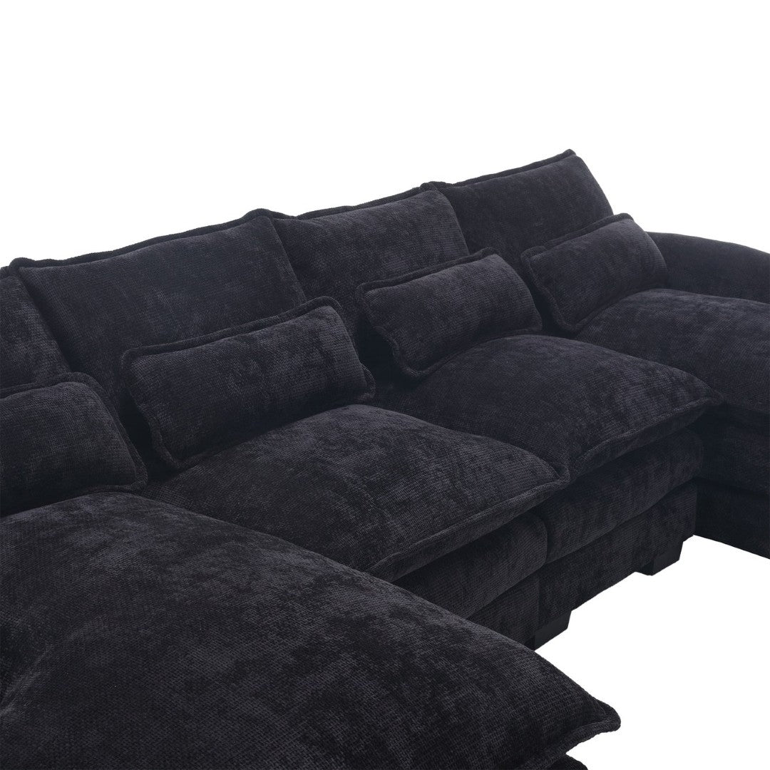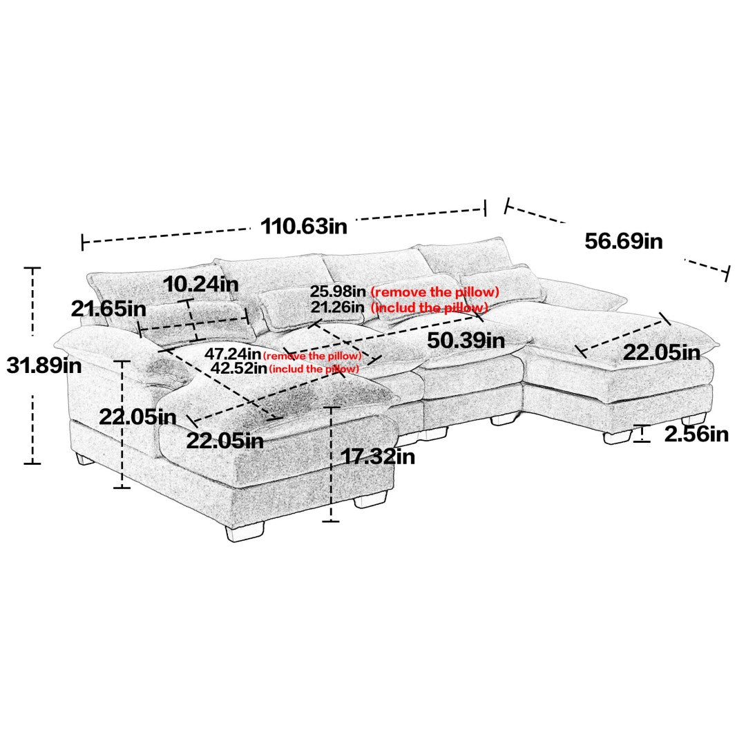 Experience spacious comfort and contemporary style with this oversized U-shaped sectional sofa. Upholstered in soft chenille/bouclé, it combines a durable solid-wood frame and high-density sponge cushions to deliver supportive seating for lounging, conversation, or meetings. Thoughtfully designed for apartment living, open-plan spaces, or conference rooms, this modular four-seater offers long-lasting comfort and clean modern lines that complement a variety of interiors.