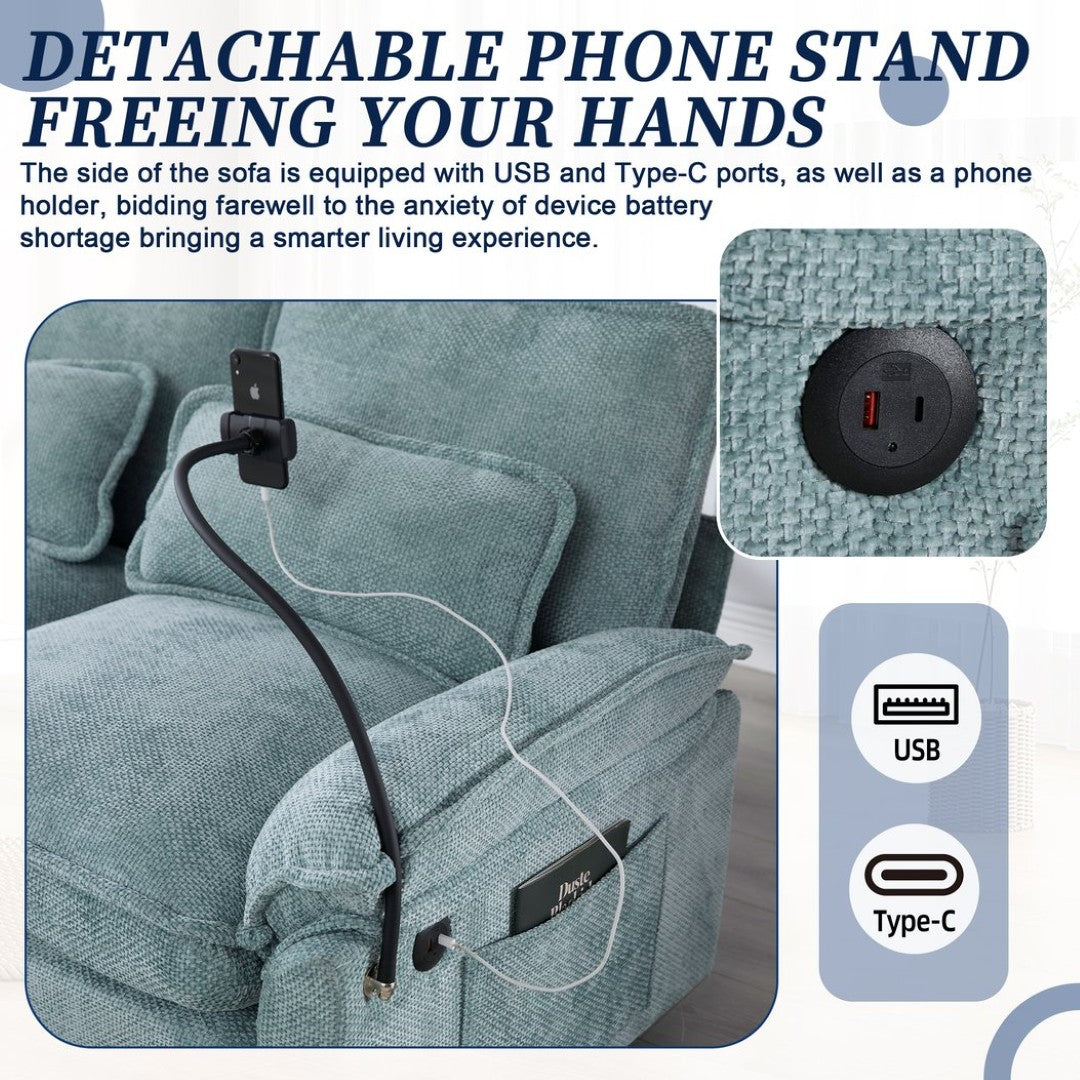 - 【Made for Convenience】The sofa is equipped with a built-in charging interface: 1 USB+1 Type-C, and comes with a phone holder. This design enables convenient charging of devices while making mobile phones within reach, perfectly integrating functionality with modern convenience and bringing a smarter living experience.
