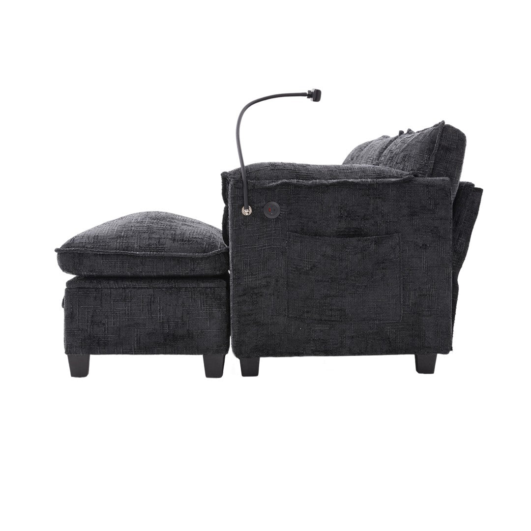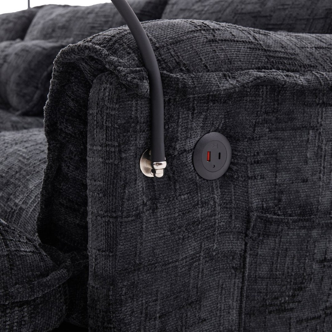 - Charging Ports and Phone Holder:The sofa is thoughtfully equipped with built-in charging interfaces: 1 USB port (5V-2.4A) + 1 Type-C port (5V-2.4A), and a phone holder. This design enables convenient charging of devices while keeping your phone within easy reach, perfectly integrating functionality with modern convenience to deliver a smarter living experience.