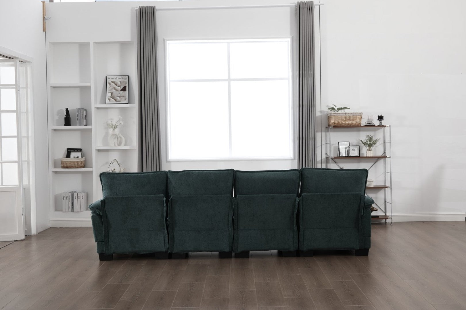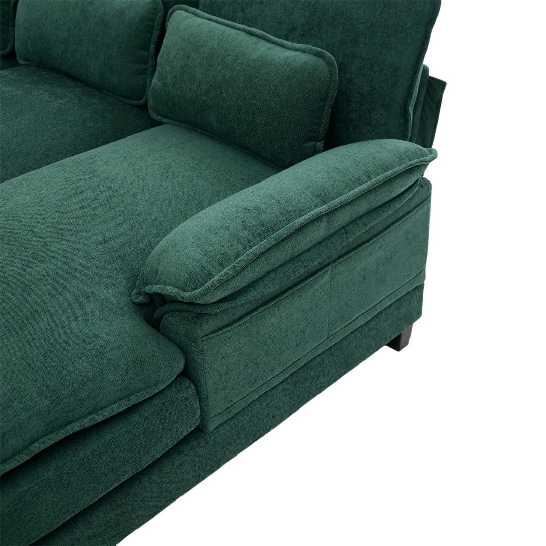 Sink into cloud-like comfort with this modular 4-seat sectional designed for modern living rooms and apartments. Plush chenille upholstery, memory-foam cushioning, and a thoughtful double-chaise layout combine to create a cozy lounge experience for family movie nights, entertaining, or everyday relaxation. Clean lines, elevated legs, and built-in storage pockets keep the look tidy while making the sofa as practical as it is inviting.