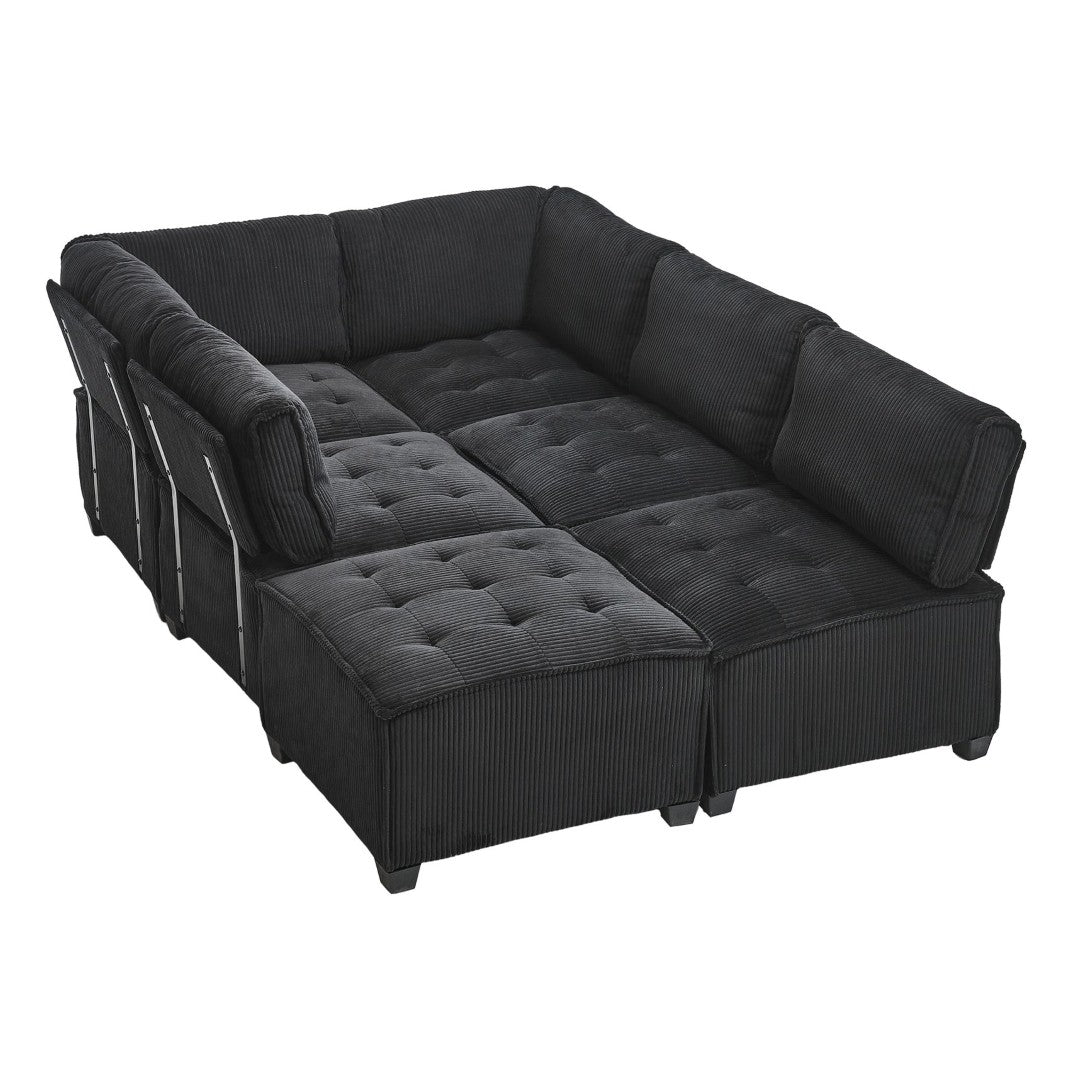 Bring style, comfort, and flexible seating to your living space with this U-shaped modular sectional sofa. Designed for long-lasting support and everyday use, it pairs cloud-like corduroy upholstery with resilient pocket-spring seating and a sturdy hardwood frame to deliver balanced comfort that won’t sag. Its reversible chaise and modular configuration let you arrange six comfortable seats to fit your room and lifestyle—ideal for family rooms, movie nights, or entertaining guests.