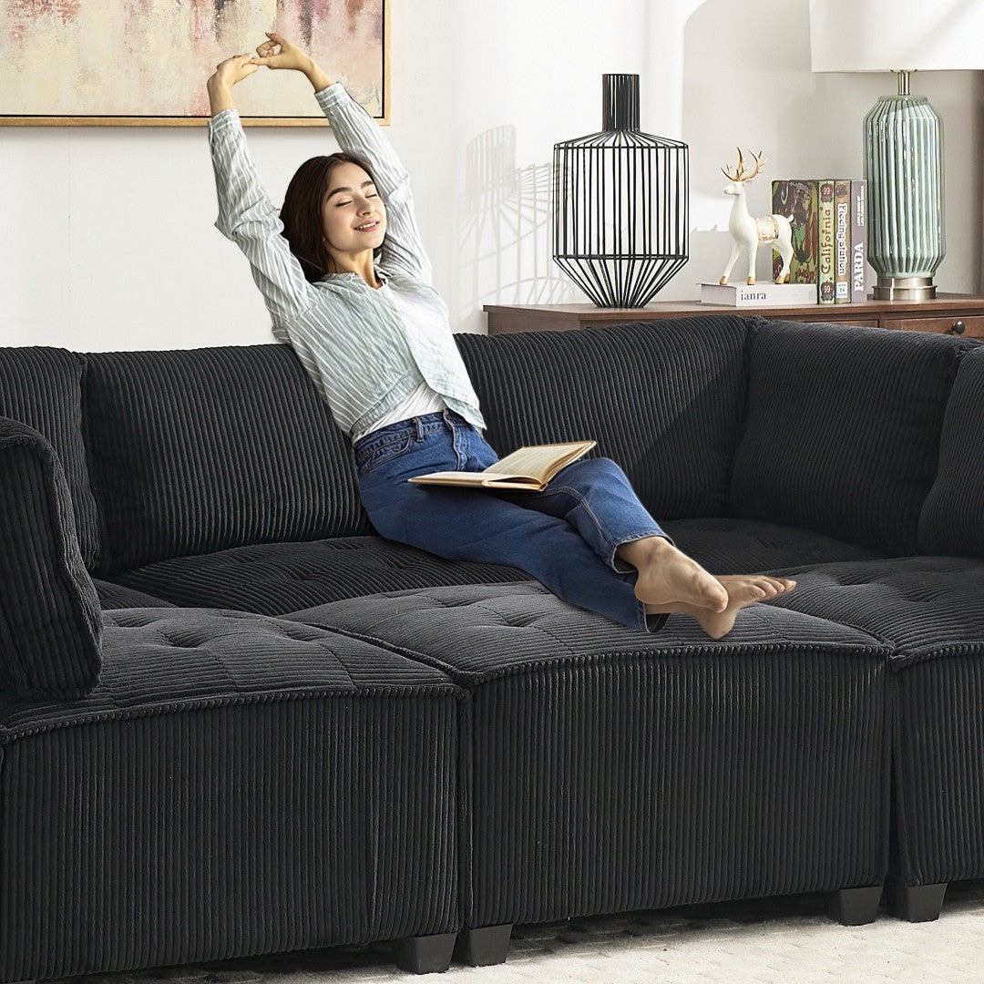 - Luxurious, Wrinkle-Resistant Corduroy - Wrapped in premium, wrinkle-resistant corduroy, this modular sectional couch combines soft, luxurious comfort with durability. The fabric feels smooth to the touch and resists wear, keeping your sofa looking and feeling fresh over time.