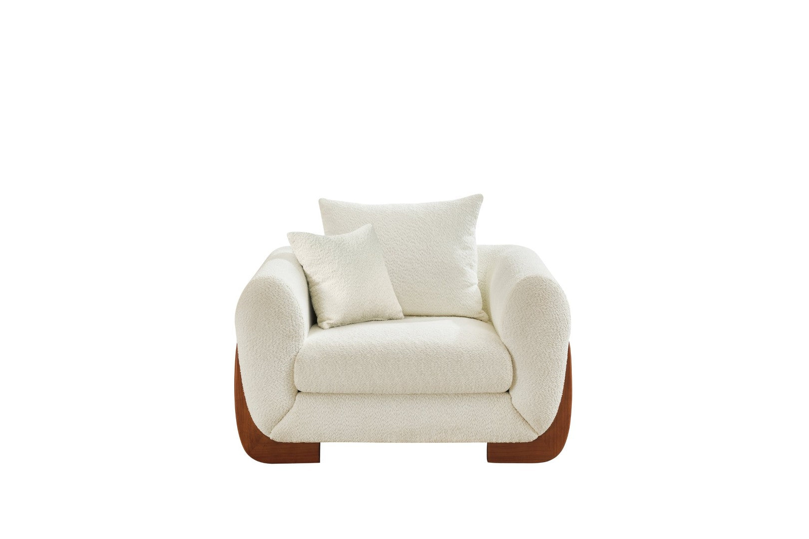 Bring effortless comfort and style to your living room with this single-arm upholstered chair. The inviting beige sherpa-like tweed adds tactile warmth while the supportive cushion and durable construction make it ideal for lounging, reading, or anchoring a seating grouping.