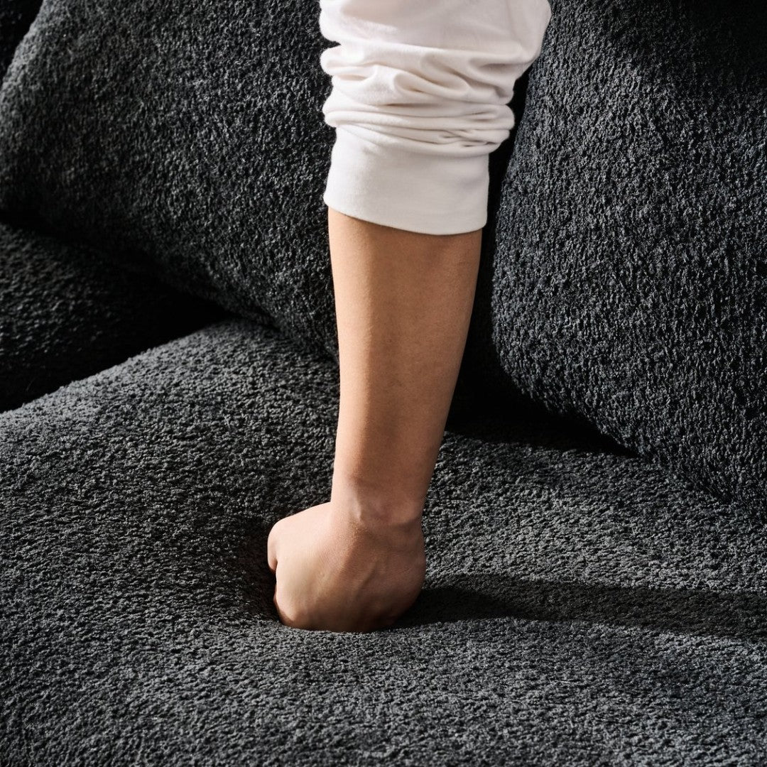 - Sherpa fabric upholstery with a dimensional nubby tweed texture for a tactile, contemporary look