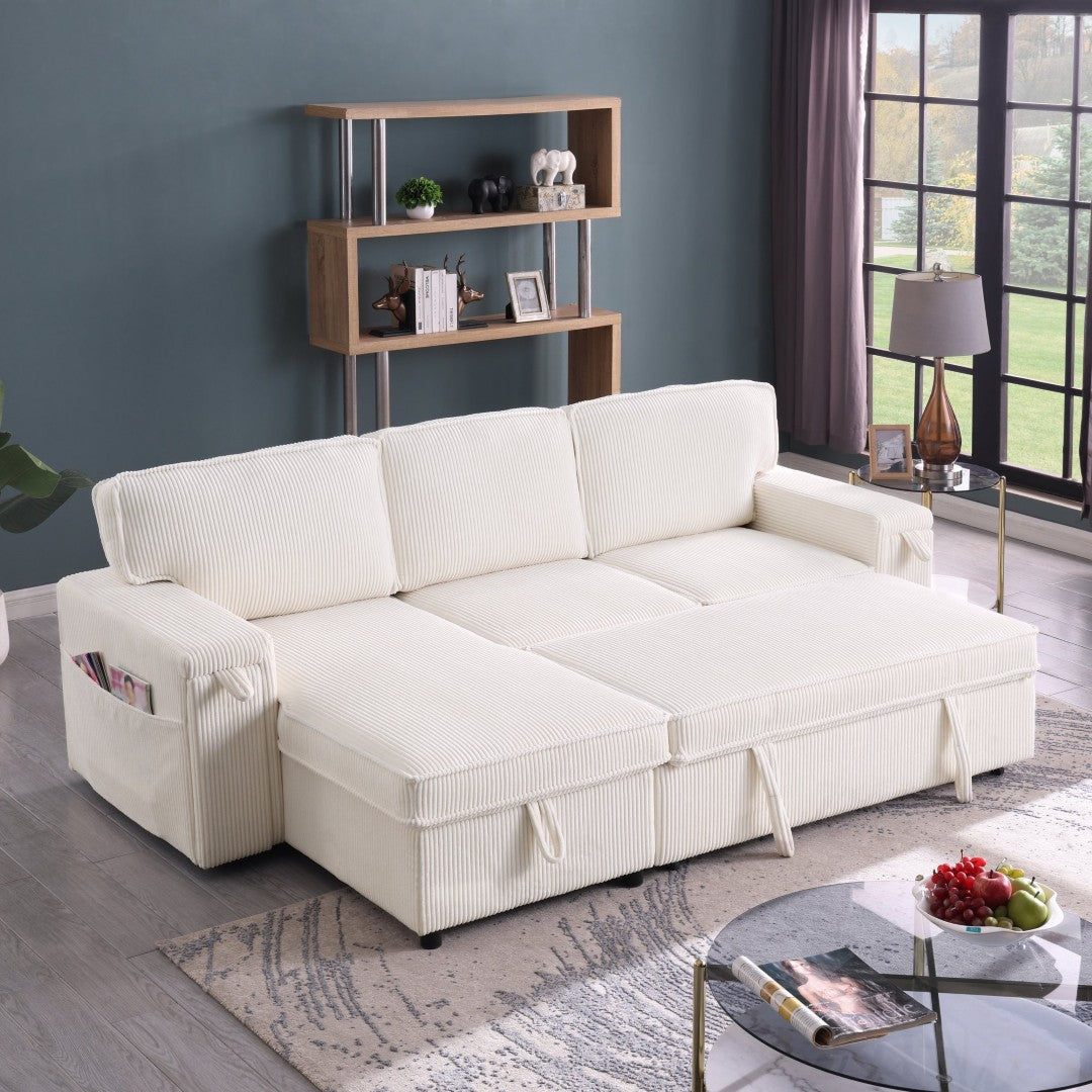 Transform your living space into a stylish, multifunctional haven with this beige chenille sectional sleeper sofa. Designed for comfort, convenience, and contemporary appeal, it combines plush seating, a hidden pull-out bed, and generous storage to meet everyday needs and overnight guest accommodations with ease.