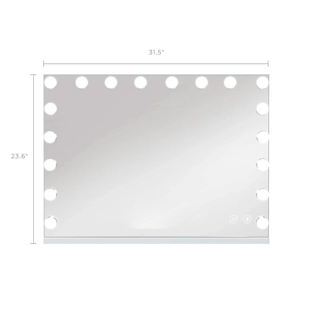 Elevate your daily beauty routine with this deluxe Hollywood-style vanity mirror. Engineered for clarity, convenience, and style, it combines a spacious tempered glass surface, 18 dimmable LED bulbs, and smart features—including Bluetooth audio and USB charging—to give you professional lighting and modern functionality whether on your tabletop or mounted on the wall.