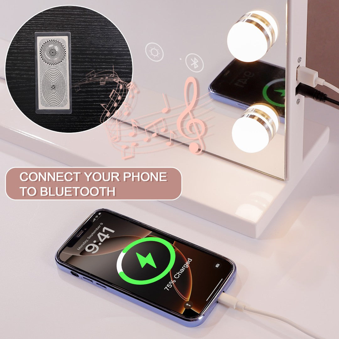 - Music Speaker and USB Charging: With the Music speaker, the lighted vanity makeup mirror can play music, even be used to answer calls. You can charge your phone/power bank/iPad with the USB charging port of the hollywood makeup mirror.