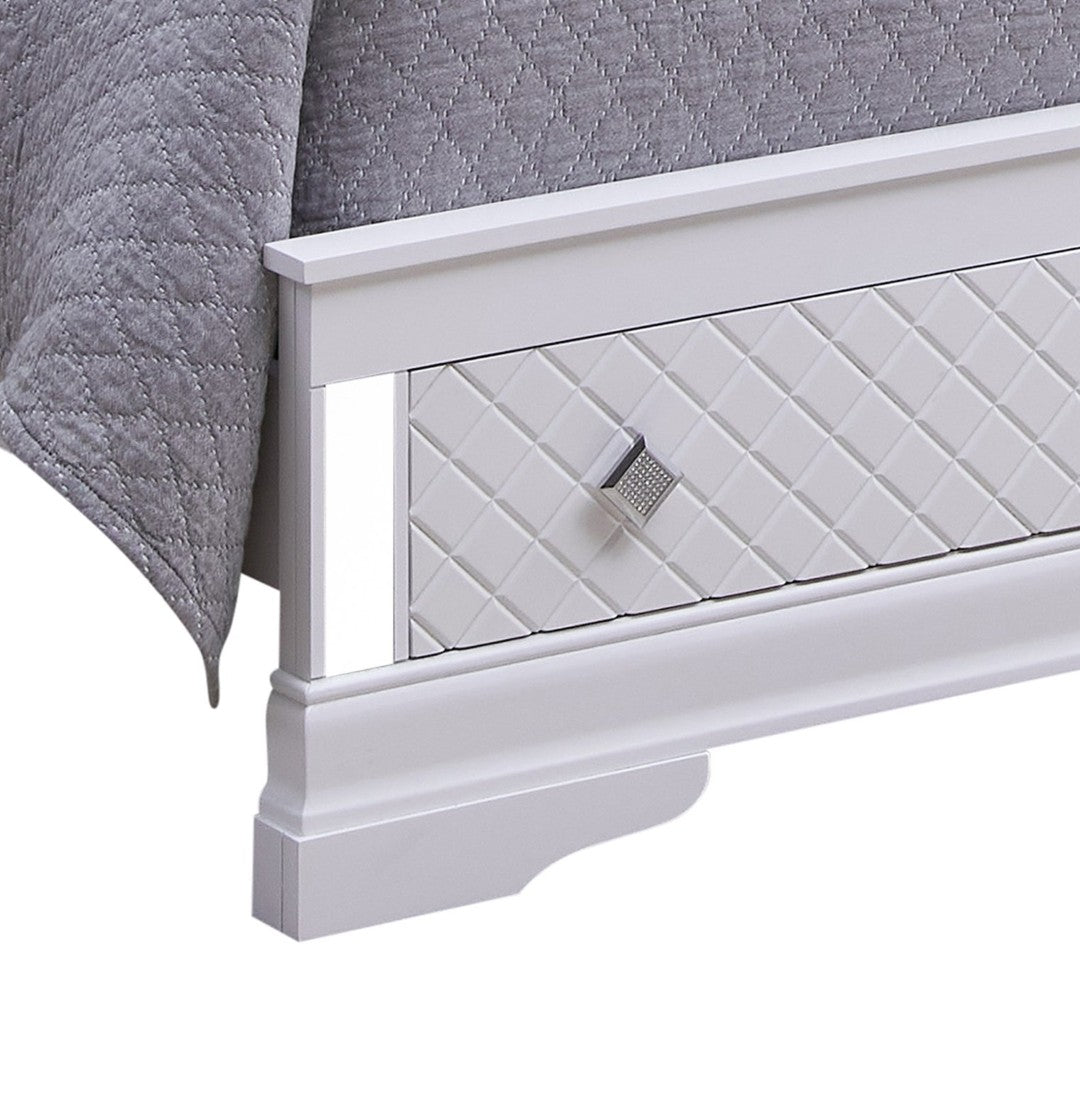 - Crafted with wood veneers and an embossed finish, this bed is both durable and visually appealing.