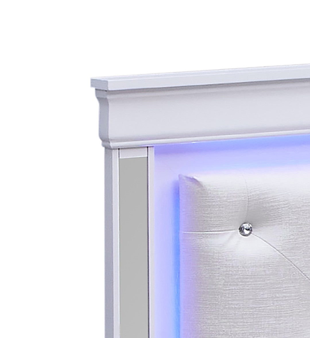 - Headboard features: Jeweled tufted upholstery for a cozy, luxurious feel plus integrated LED accent lighting to enhance nighttime ambiance.