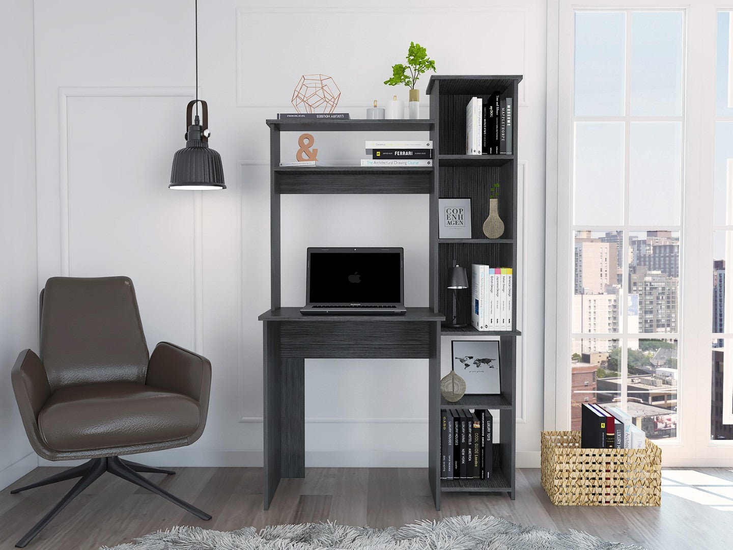 - Featuring a side bookcase with Five open shelves for books, decor or files