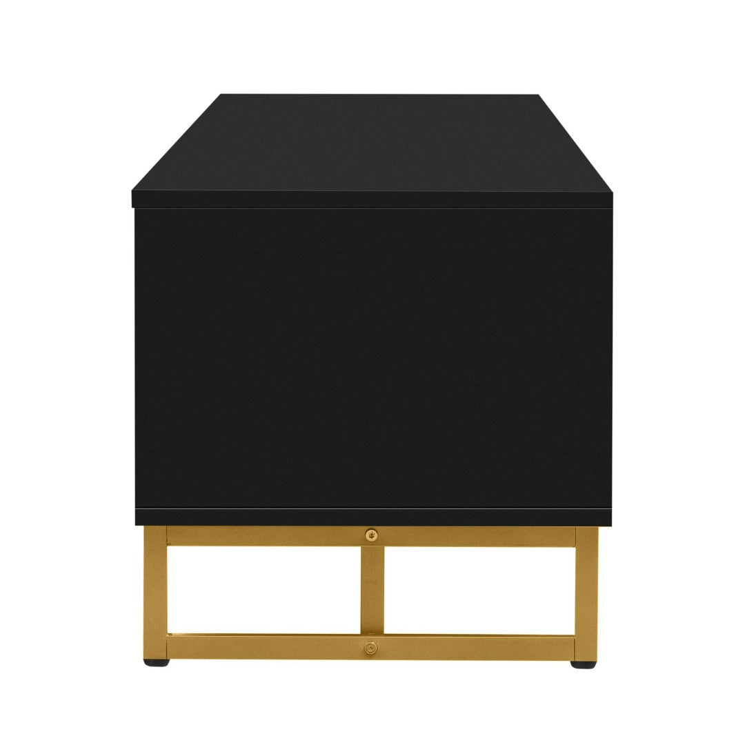 Upgrade your living room with this contemporary TV media console that blends modern style with practical storage. Designed to support large TVs while keeping clutter out of sight, it features a distinctive wave-groove door design, a durable metal frame, soft-glide drawers, and versatile interior compartments—ideal for media devices, accessories, and décor.