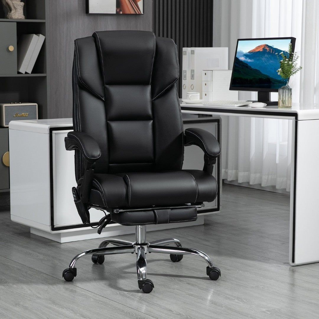 Relax and recharge at your desk with a feature-packed executive chair designed for comfort, support, and convenience. This reclining office chair combines targeted massage and heating, ergonomic high-back support, and adjustable settings so you can customize your seating for work or rest. Durable PU leather and smooth-rolling casters make it a practical addition to home offices, gaming setups, or conference rooms.