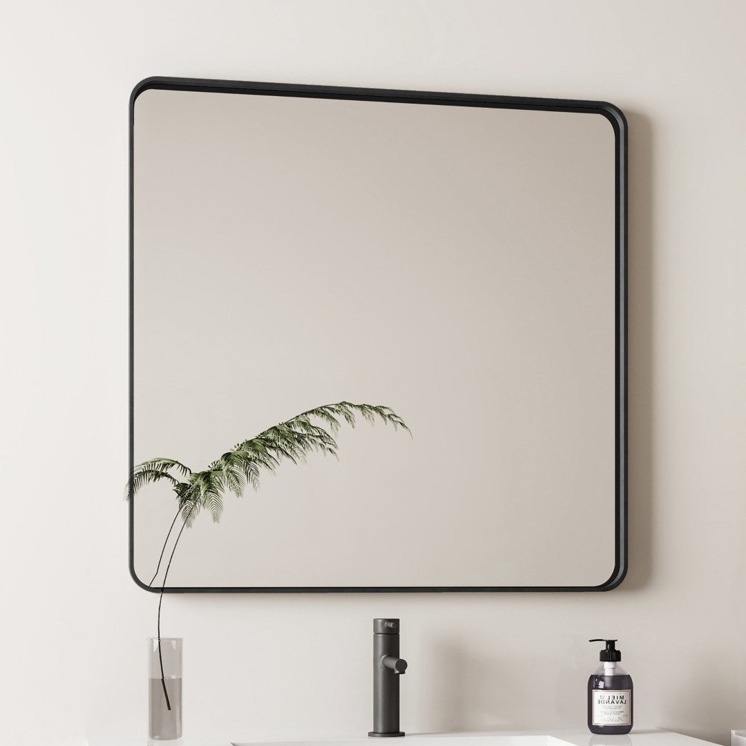 Give your space an instant lift with this sleek, modern square mirror—designed to blend function and style across bathrooms, bedrooms, and living areas. The clean black metal frame and large reflective surface create a striking focal point while improving light and the sense of space. Built to withstand humid environments, it’s a practical choice for vanities, dressing areas, and decorative wall displays.