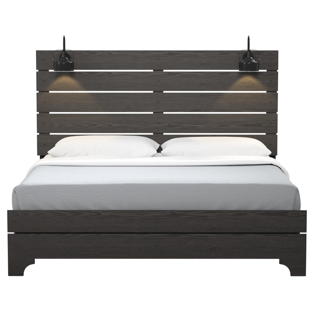 Elevate your bedroom with this elegant brown queen bed that blends modern farmhouse charm with practical features. Designed to make a statement, it offers a warm stone-brown finish, built-in lighting for ambiance, and durable engineered construction for low-maintenance care—perfect for everyday living and restful nights.