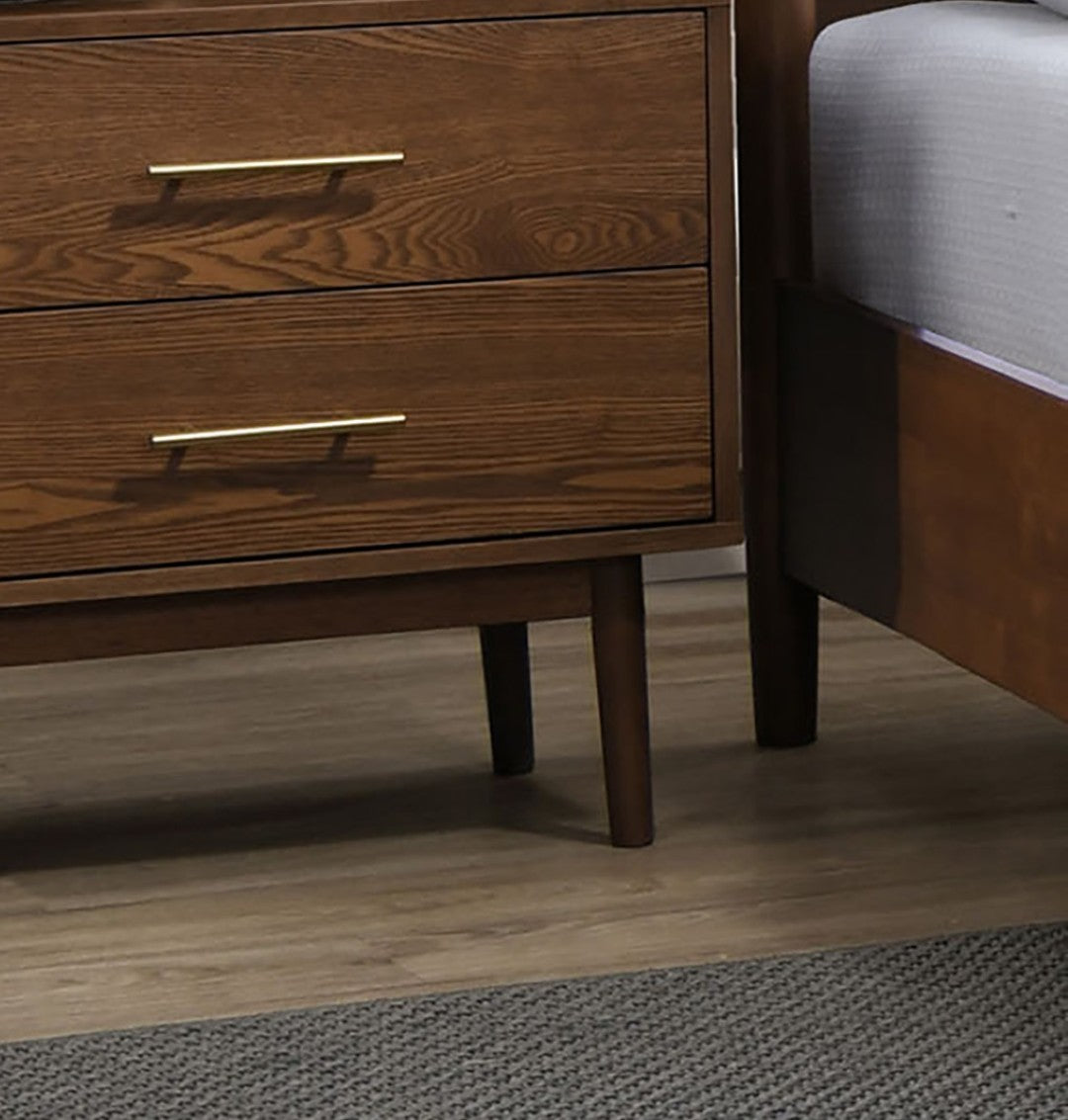 Transform your bedroom into a warm, sophisticated retreat with this mid-century modern 3-piece bedroom set. Featuring a walnut finish and clean-lined panel headboard, the set blends timeless design with practical functionality to create a focal point that complements both contemporary and classic interiors.