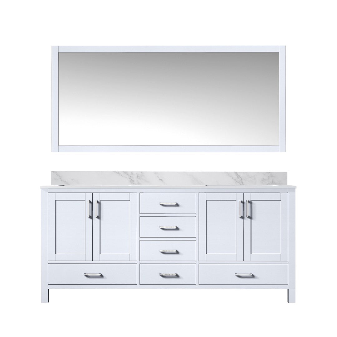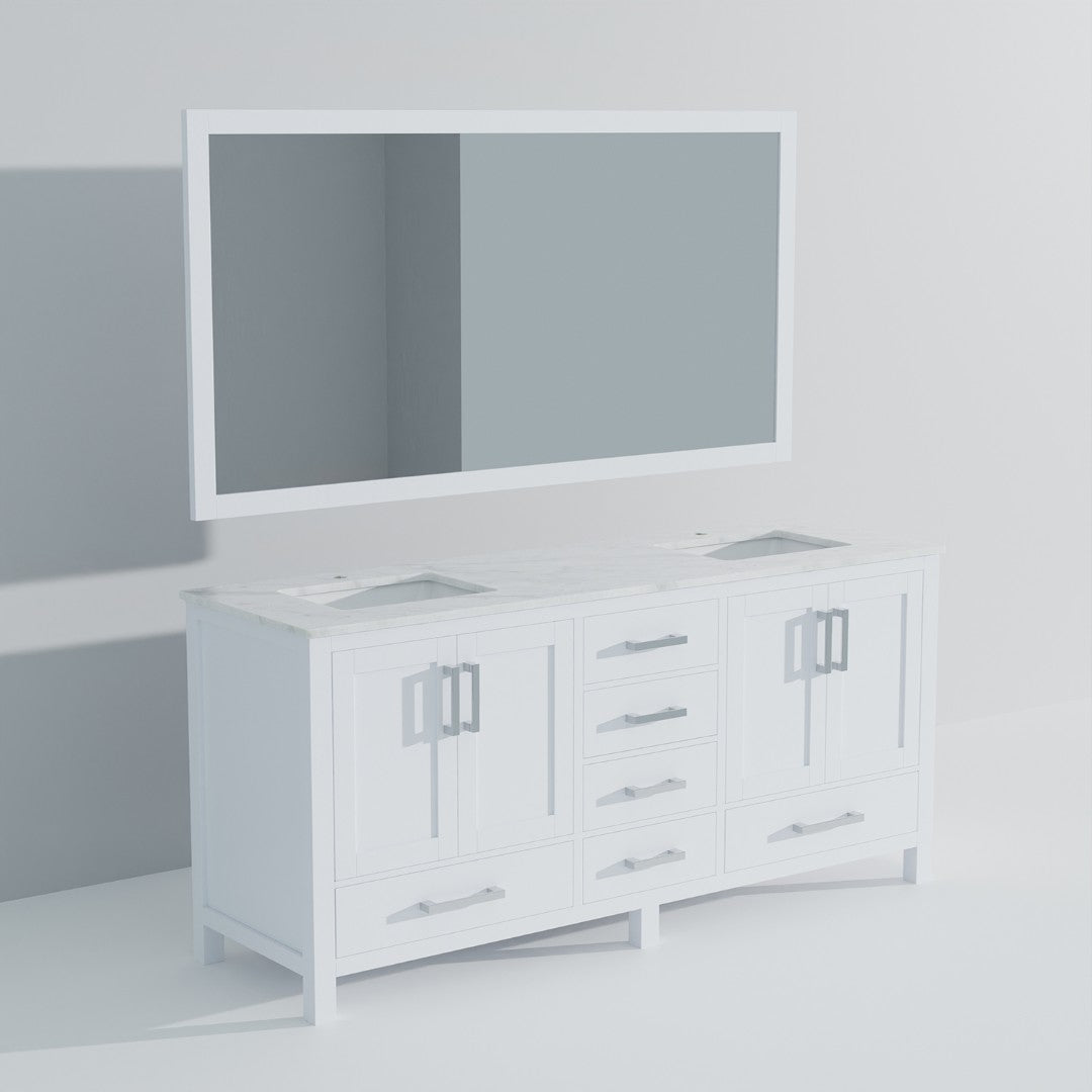 Elevate your bathroom with this elegant white double vanity, thoughtfully designed for both style and functionality. The Carrara marble top and matching large mirror create a cohesive, upscale look, while abundant storage and soft-close hardware make daily use effortless. Ideal for master bathrooms, the vanity balances classic materials with modern convenience.