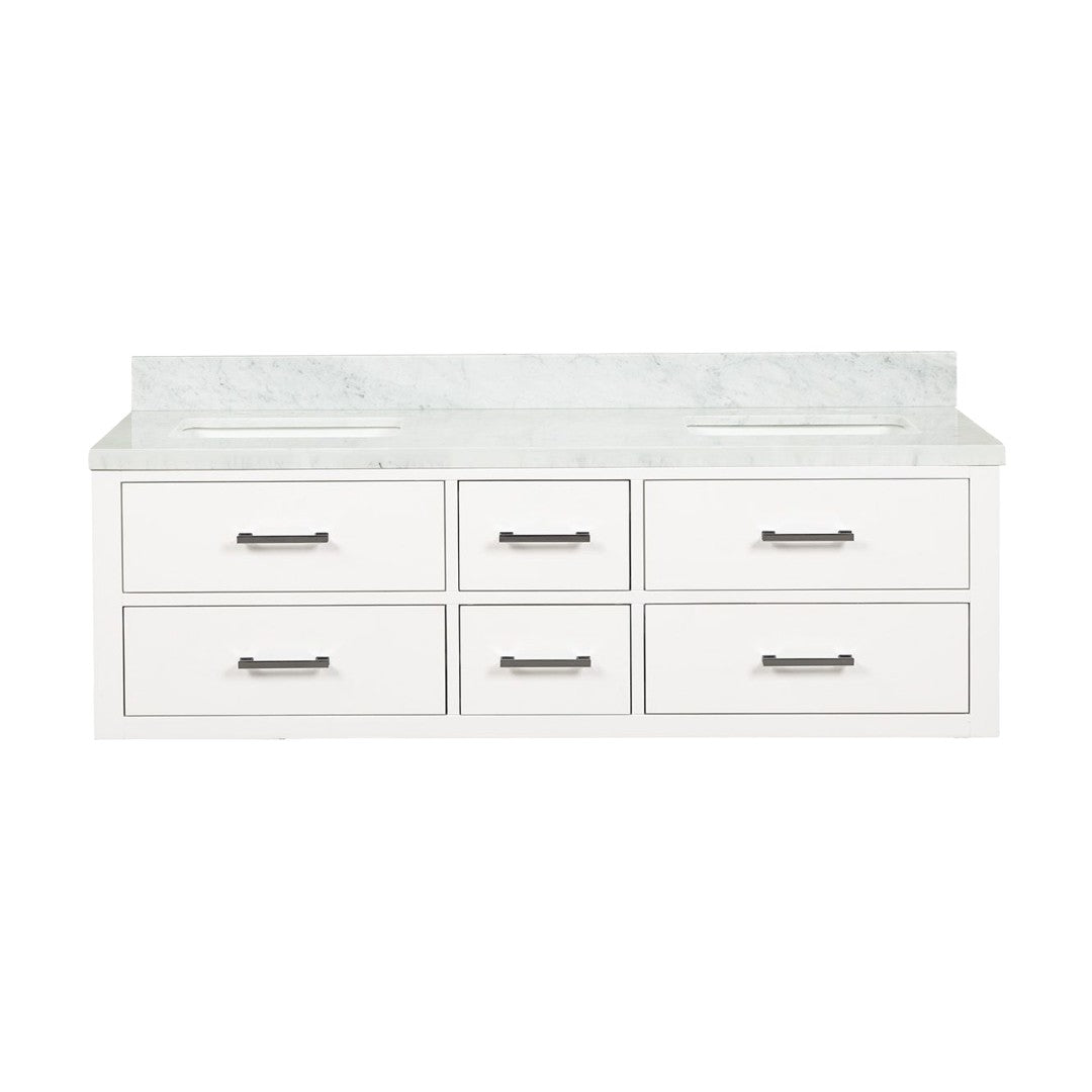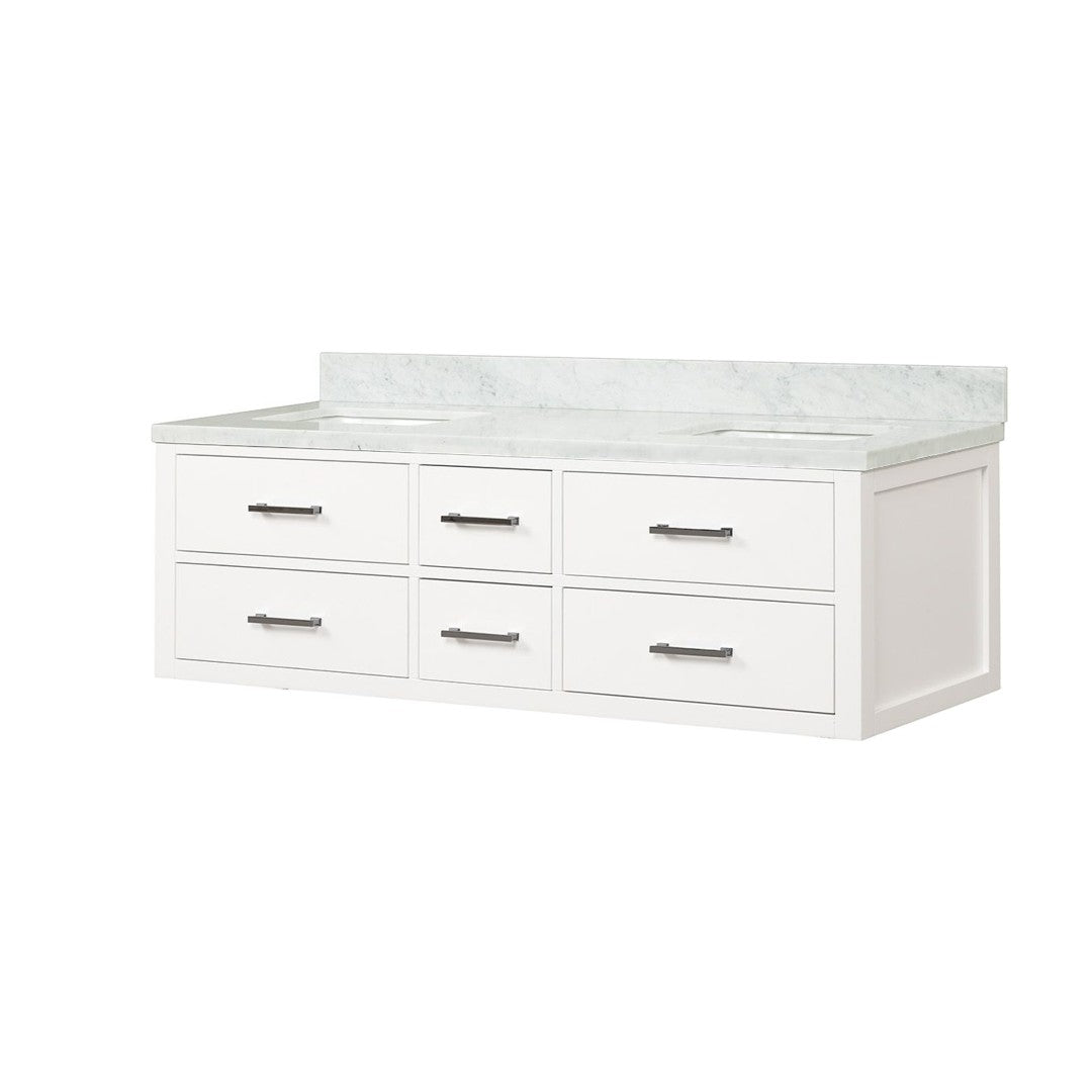 Upgrade your bathroom with a classic, ready-to-install double vanity that blends timeless Carrara marble with durable wood construction for lasting beauty and function. This fully assembled unit delivers ample storage, smooth soft-close drawers, and a clean white finish that complements both modern and traditional décors.