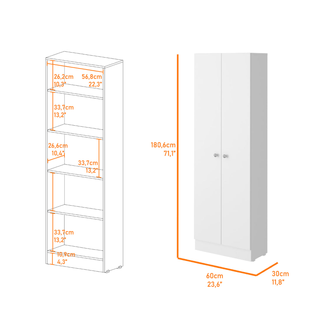 - Pantry Cabinet Dimensions: 71.1 in H x 23.6 in W x 11.8 in D — tall double-door pantry for efficient vertical storage.