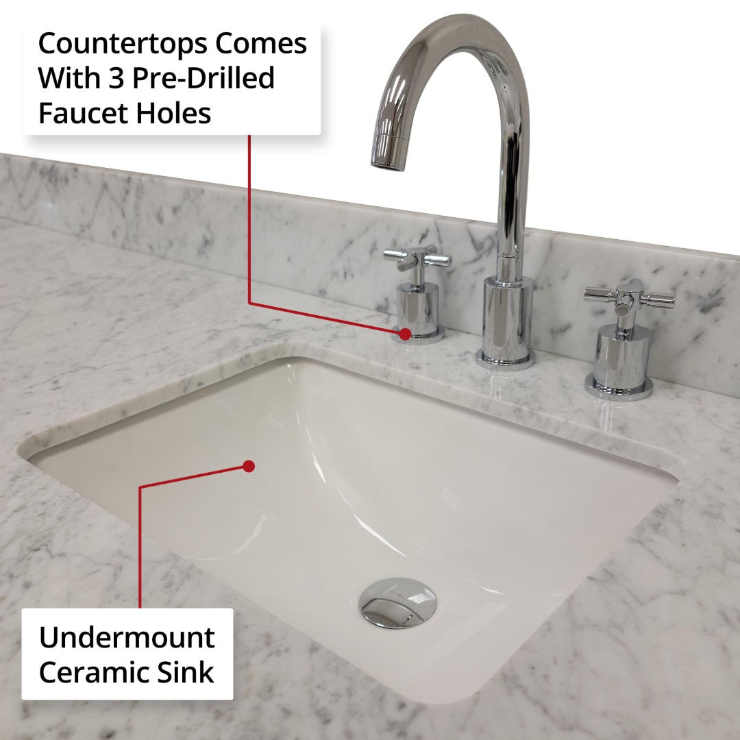 - Carrara Marble tops are polished, finished by hand and sealed twice for longevity