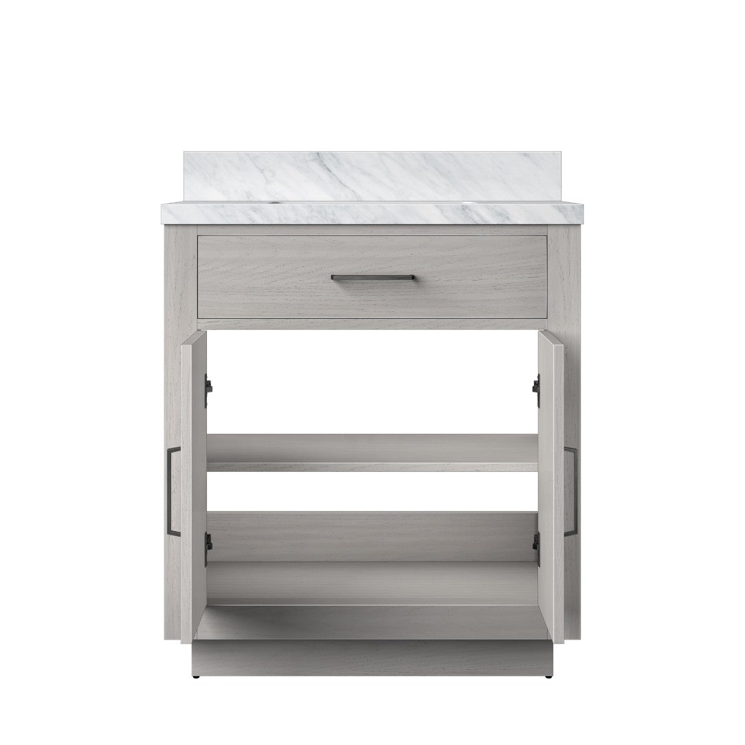 - Top: Genuine Carrara marble countertop for elegant veining and lasting durability