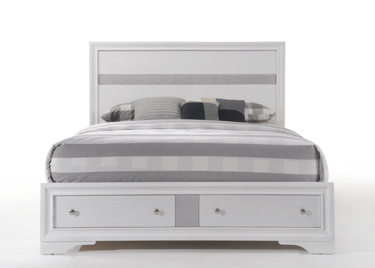 - Storage bed design with a rectangular headboard and footboard, featuring a low-profile footboard for modern appeal