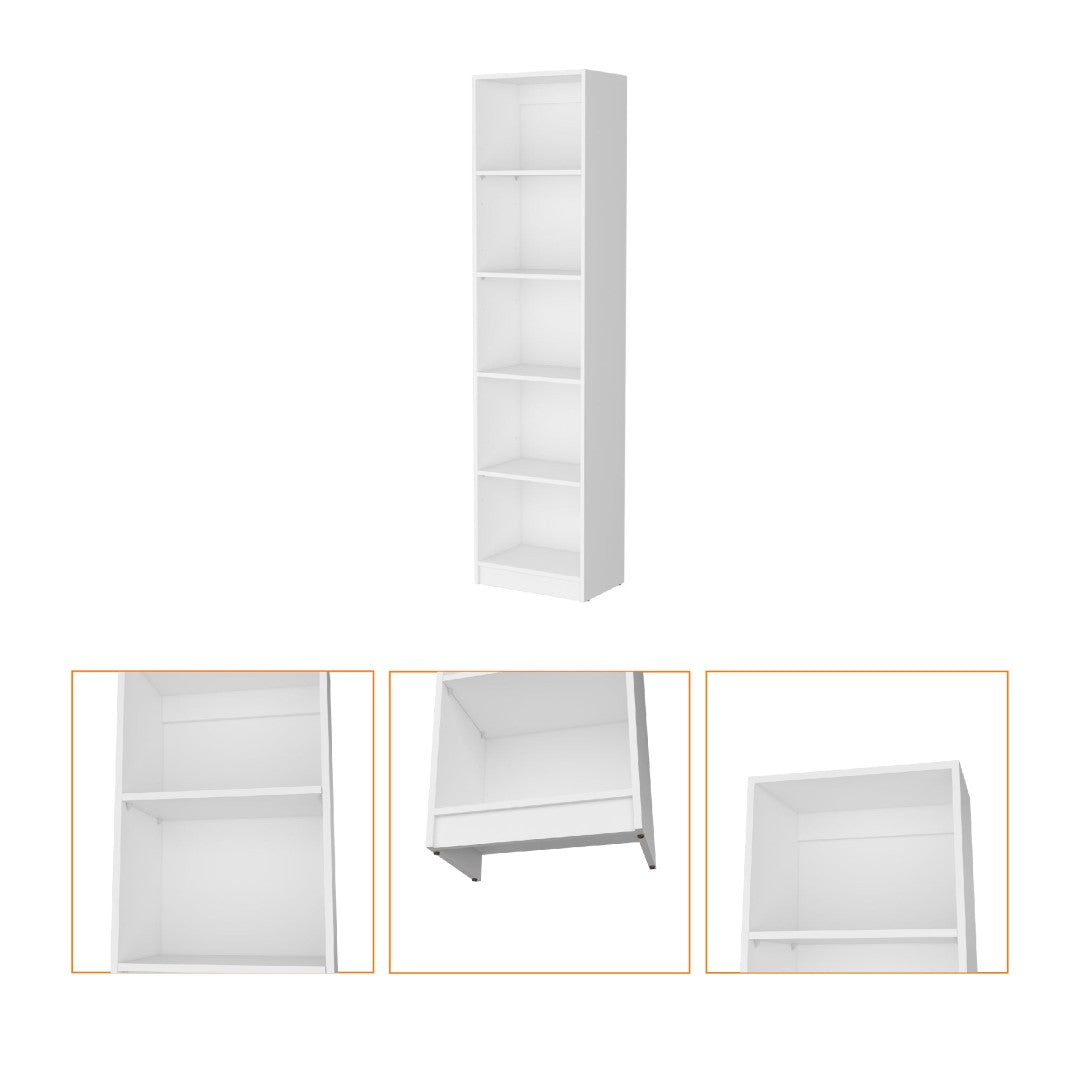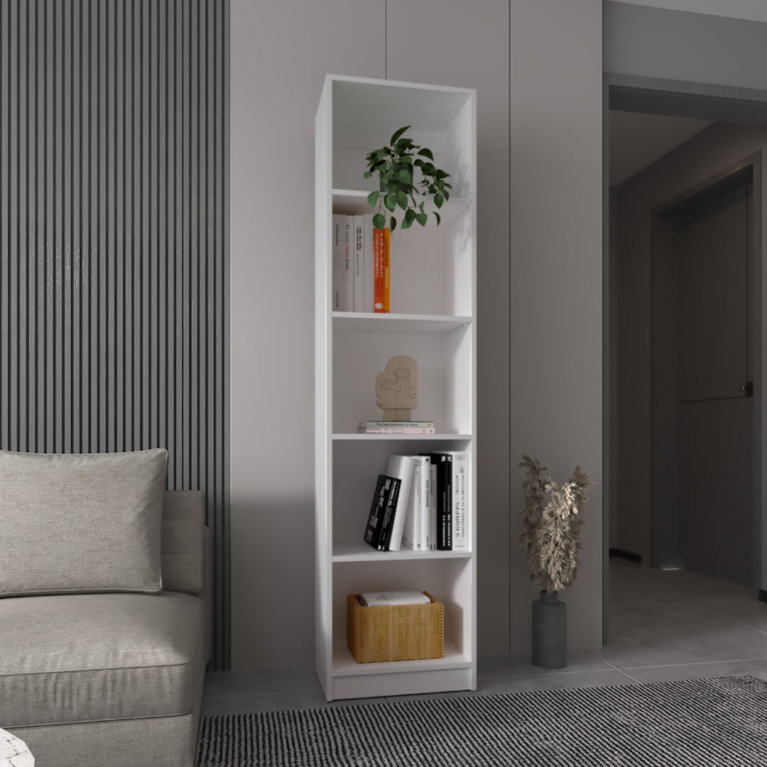 Add a clean, contemporary focal point to any room with this slim five-shelf bookcase. Designed to maximize vertical storage without consuming floor space, it organizes books, framed photos, and decorative accents while keeping a light, airy aesthetic that complements modern interiors.