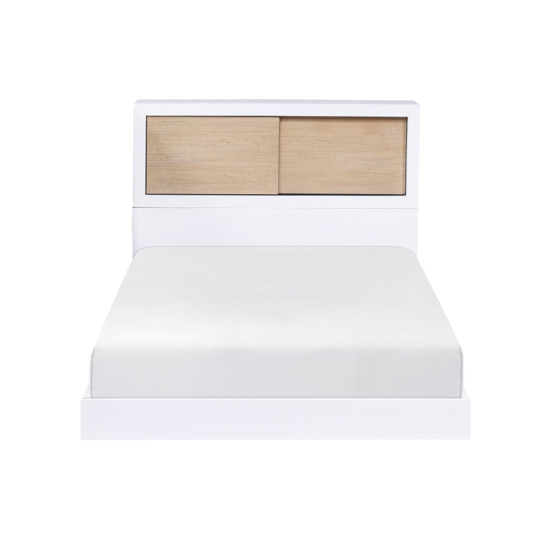 - Storage: Enclosed shelf space in the headboard with sliding doors to protect contents from dust and keep the room tidy.