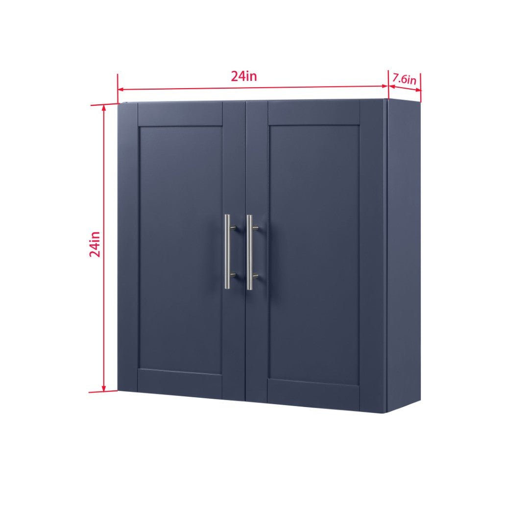 Add organized, stylish storage to any room with this blue wood hanging cabinet. Combining classic beadboard detailing and a clean, minimalist silhouette, it offers durable manufactured wood construction, adjustable shelving, and a versatile design that works above vanities, desks, or in kitchens and living areas. The soft-blue finish and silver knobs provide a subtle decorative touch while keeping toiletries, pantry items, or display pieces neatly tucked away.