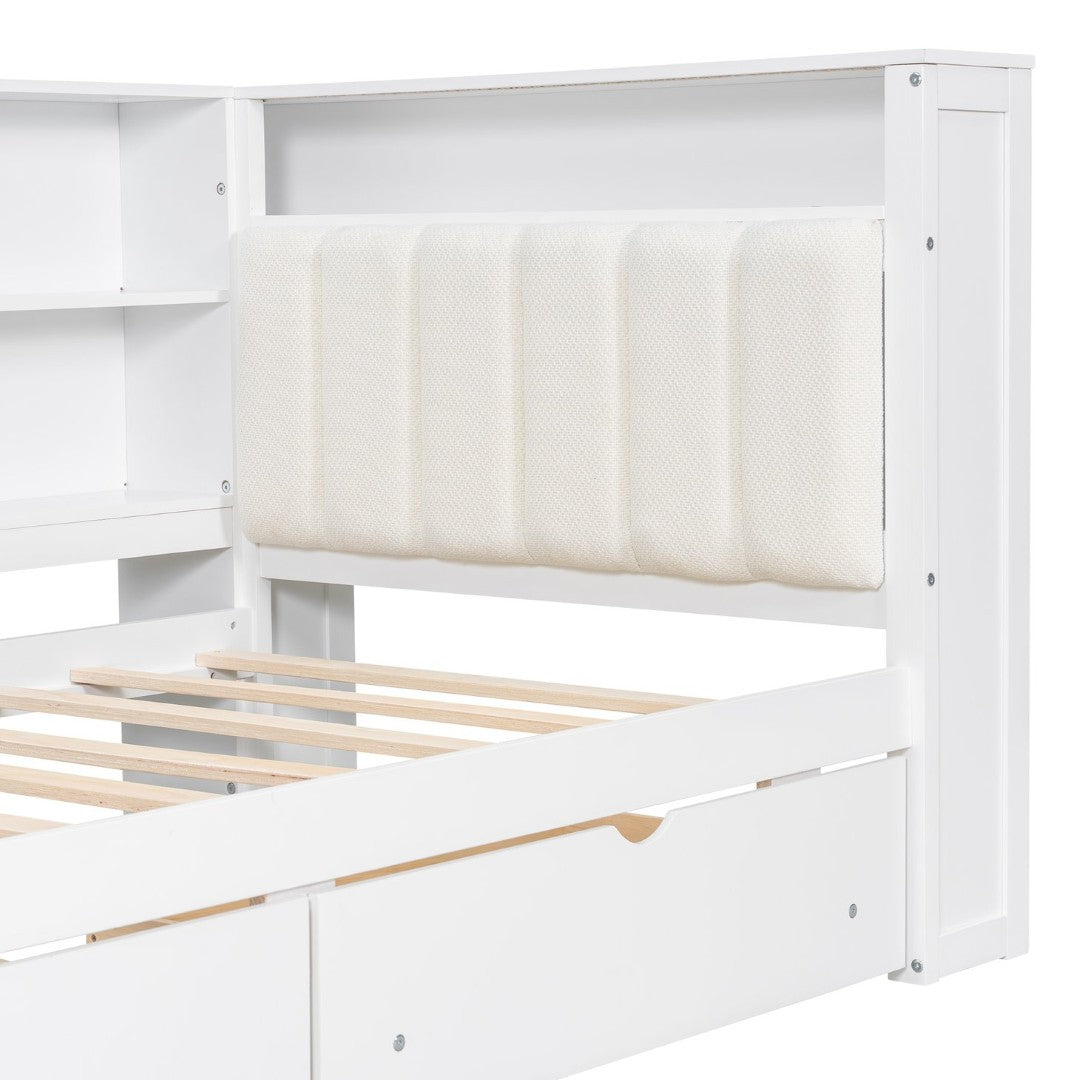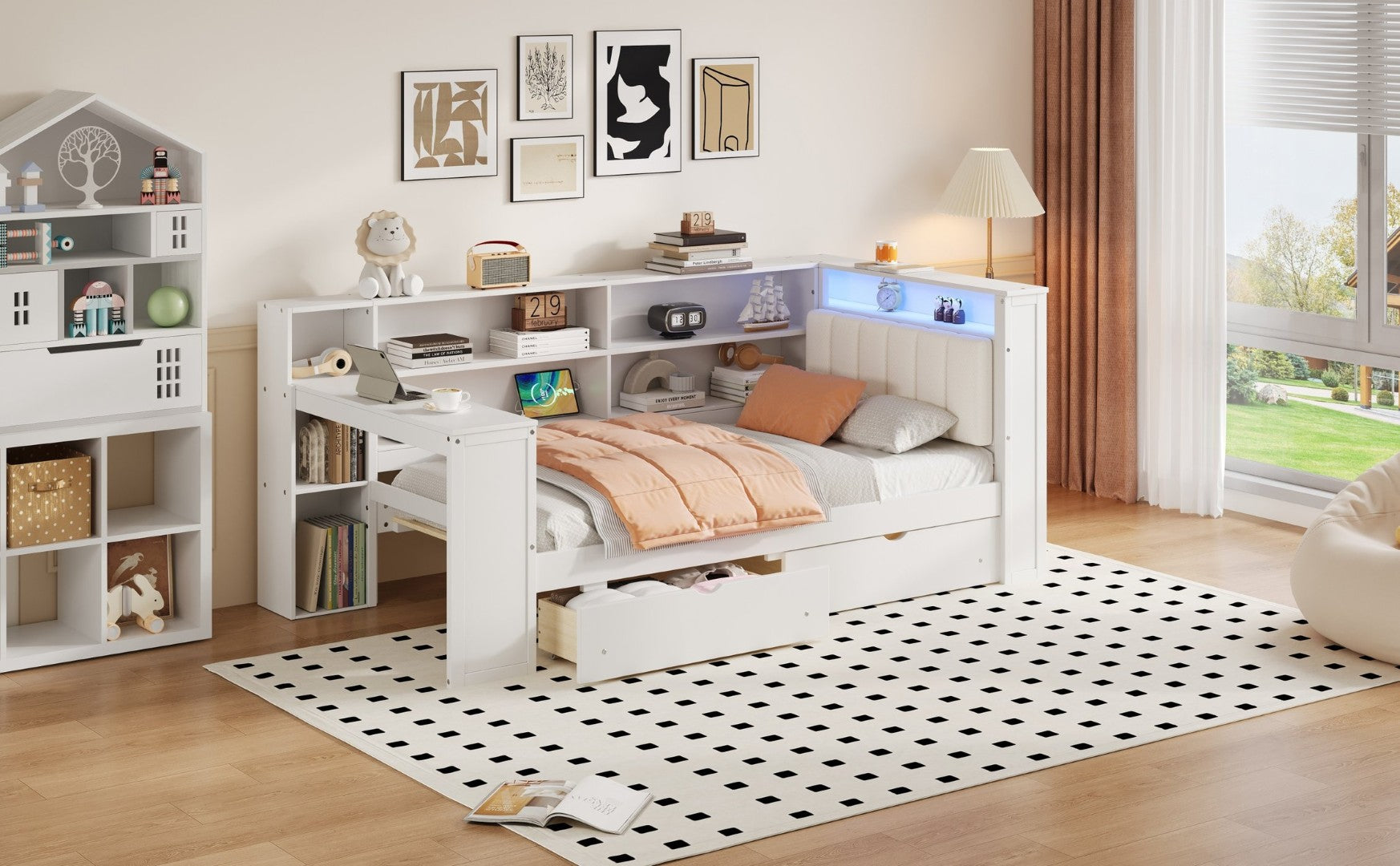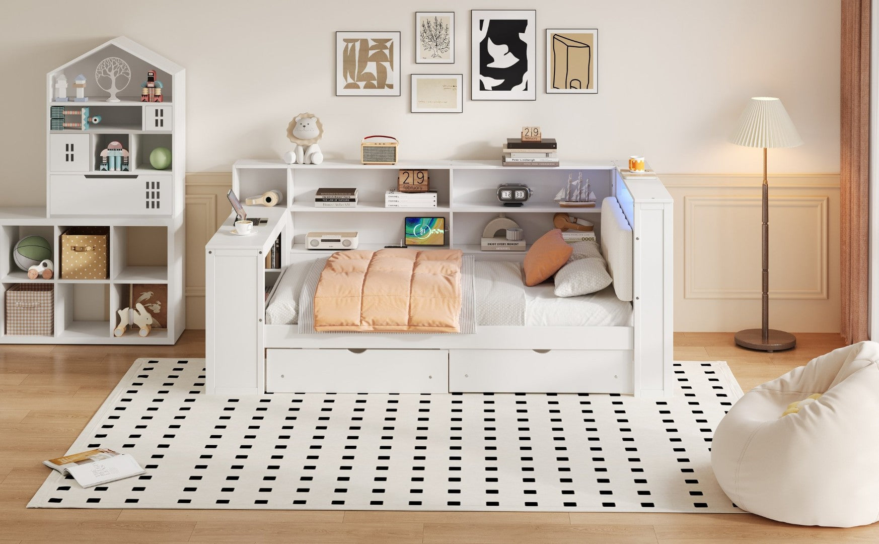 - [Multiple Storage Space] The bed features built-in 8 storage shelves. Besides, there are 2 drawers under the bed. Your bedding, toys, mobile phones, and so on can all be properly stored.