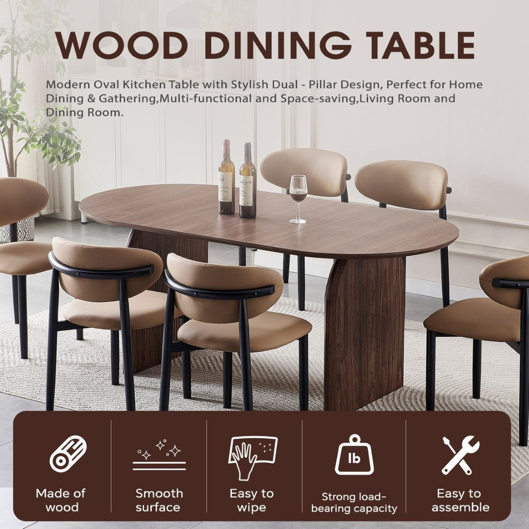 Elevate your dining and living spaces with a modern oval dining table that blends sculptural design and everyday functionality. The smooth, arc-shaped tabletop and double-column base create a balanced, contemporary silhouette that suits minimalist, Scandinavian, or modern interiors. Built from quality MDF and wood with careful craftsmanship, this table offers lasting durability and versatile use — from family meals and gatherings to a temporary home office surface.