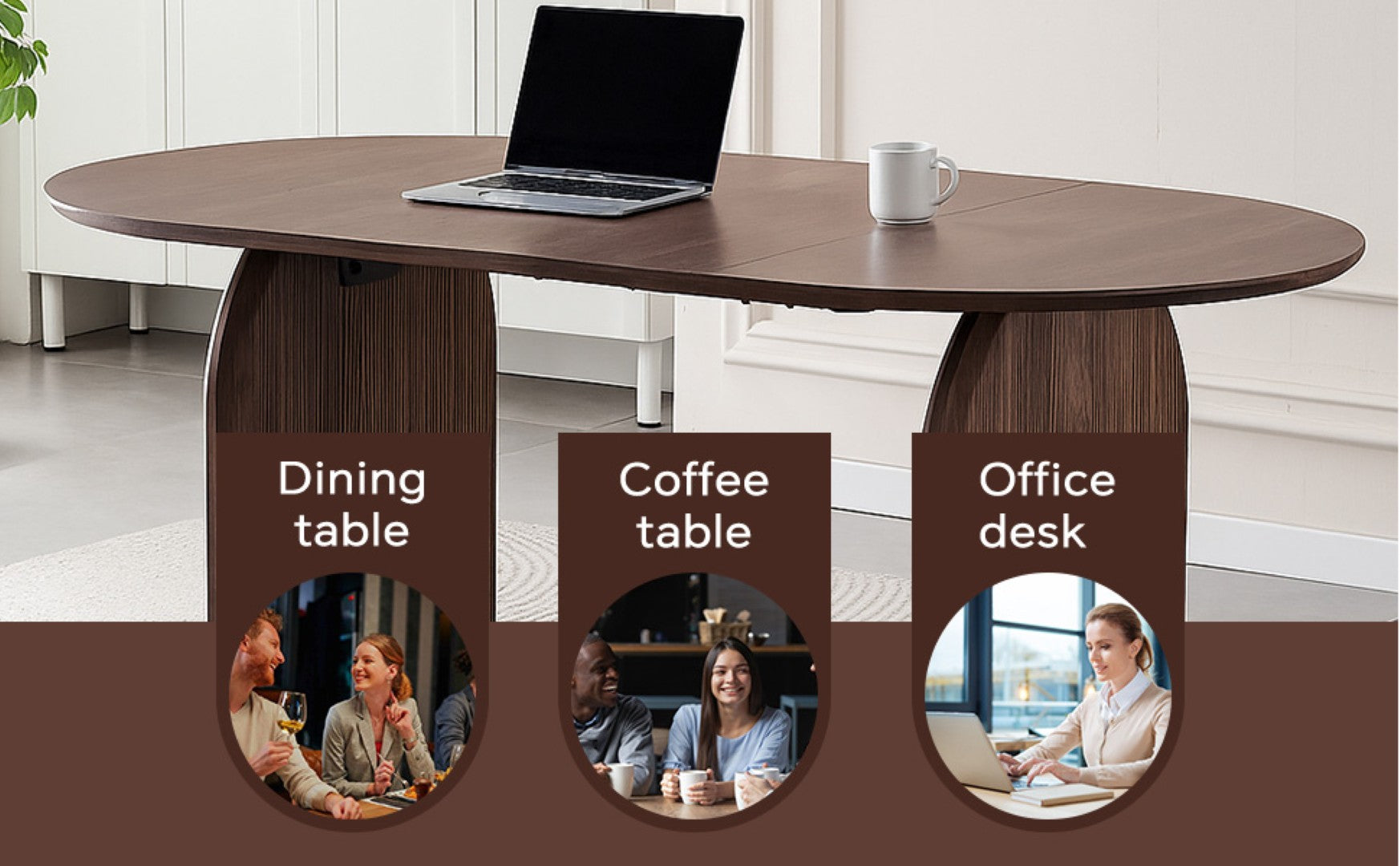 - Modern oval tabletop: soft, continuous curves that soften room lines and improve traffic flow around the table